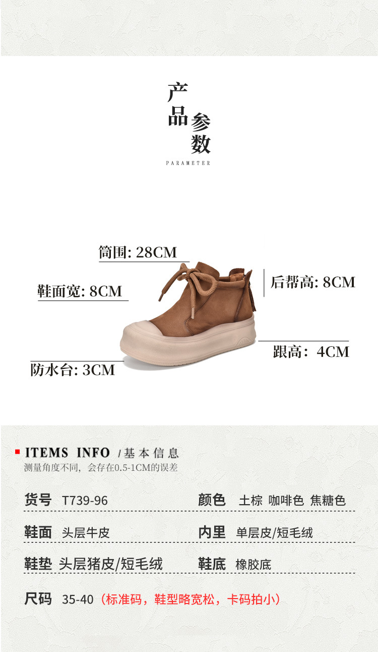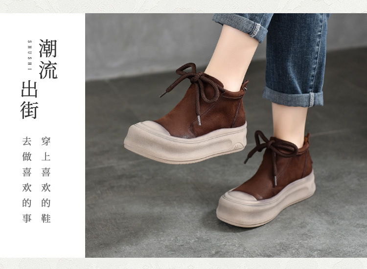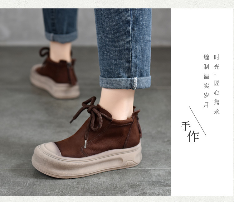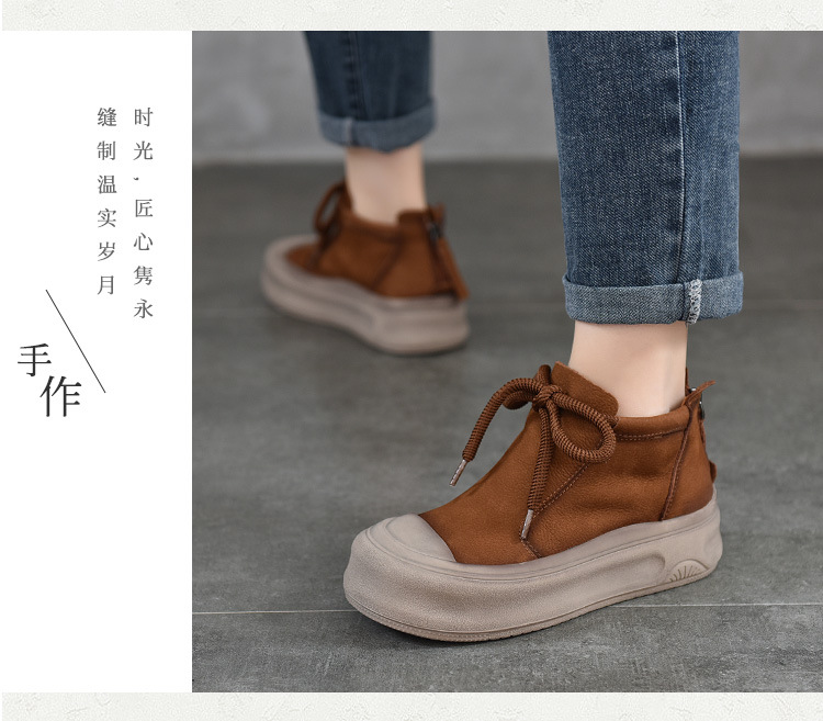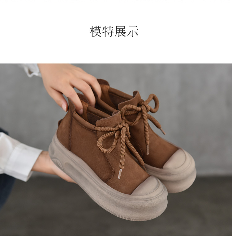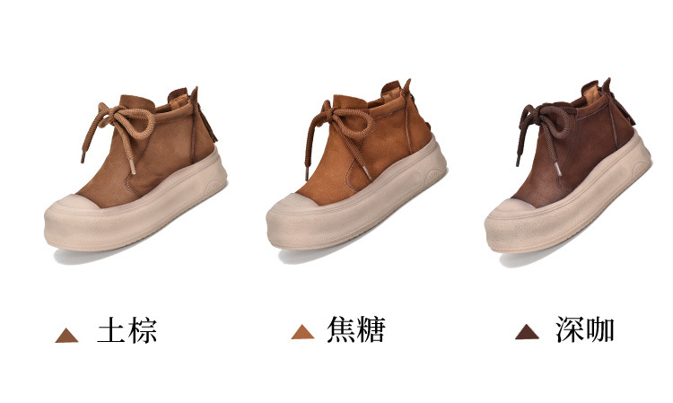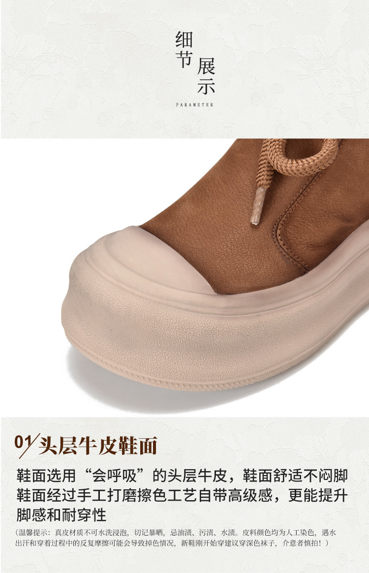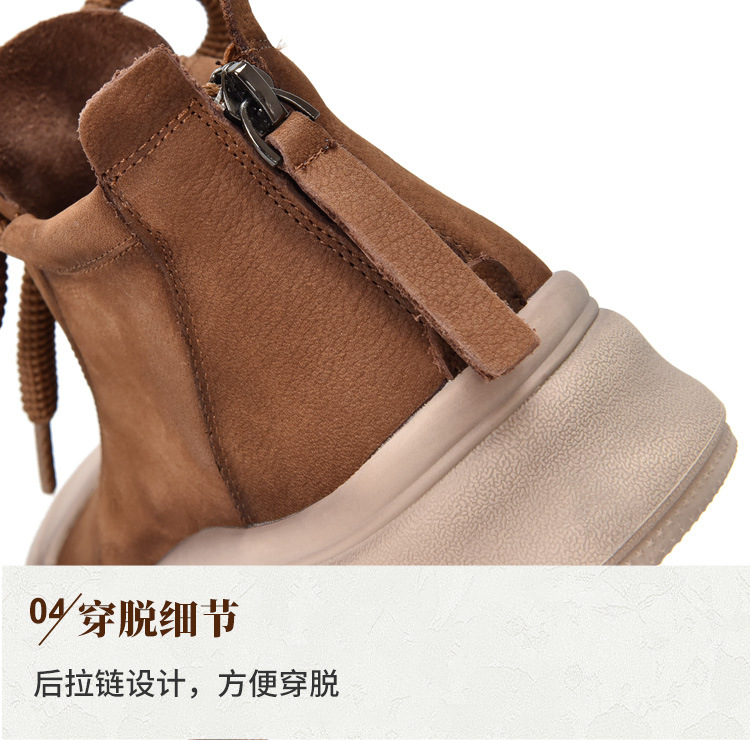 【특가 135】 천연 가죽 숏부츠 여성용 라운드토 캐주얼 하이탑 슈즈 1층 소가죽 마틴부츠 두꺼운 밑창