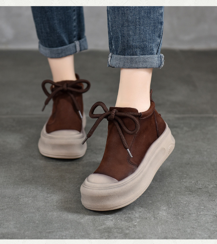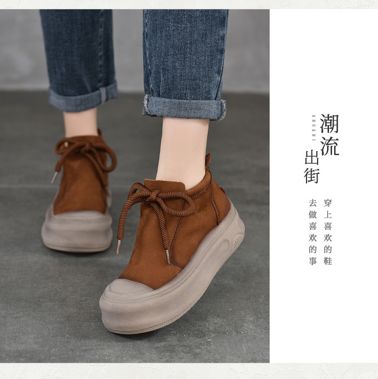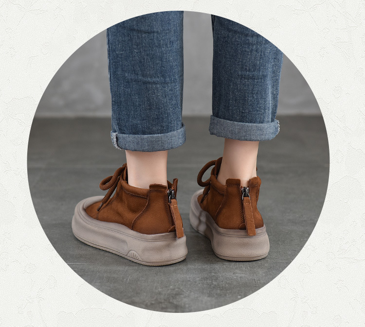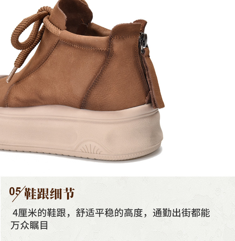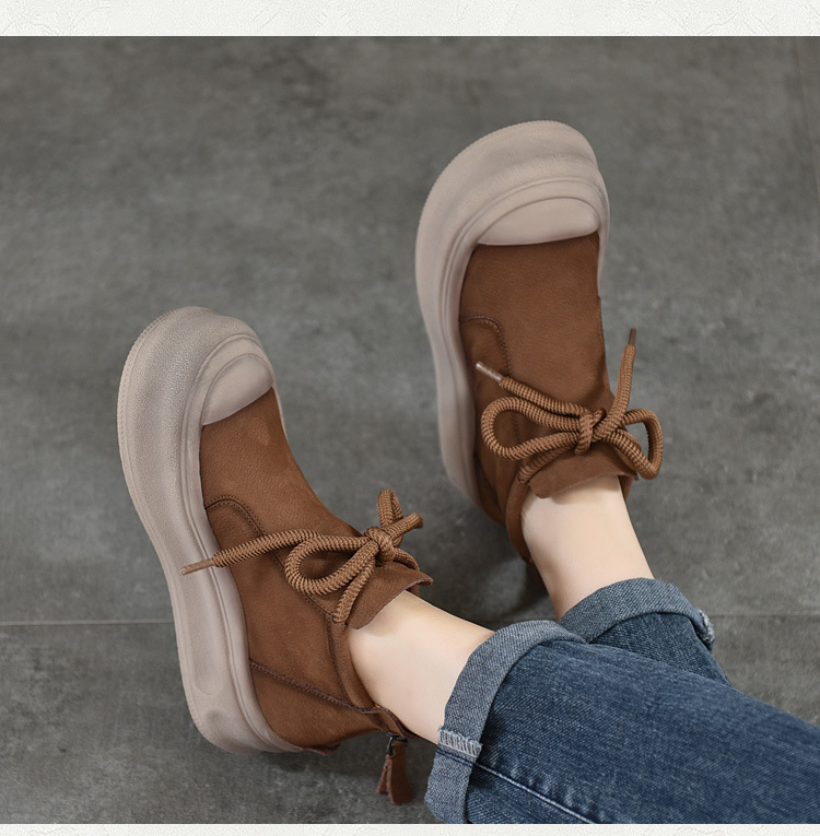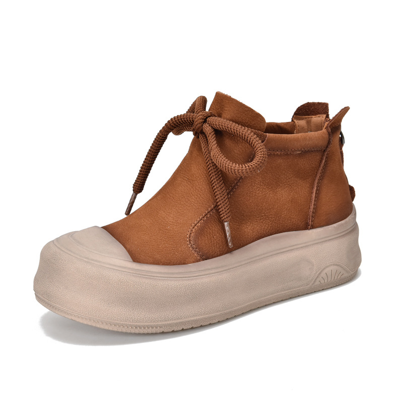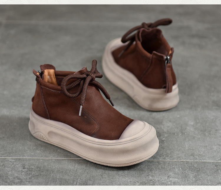 【특가 135】 천연 가죽 숏부츠 여성용 라운드토 캐주얼 하이탑 슈즈 1층 소가죽 마틴부츠 두꺼운 밑창
