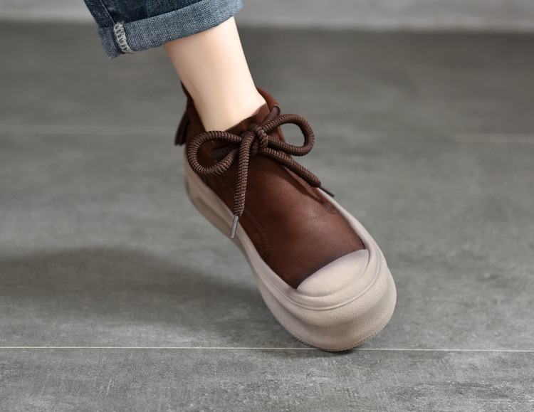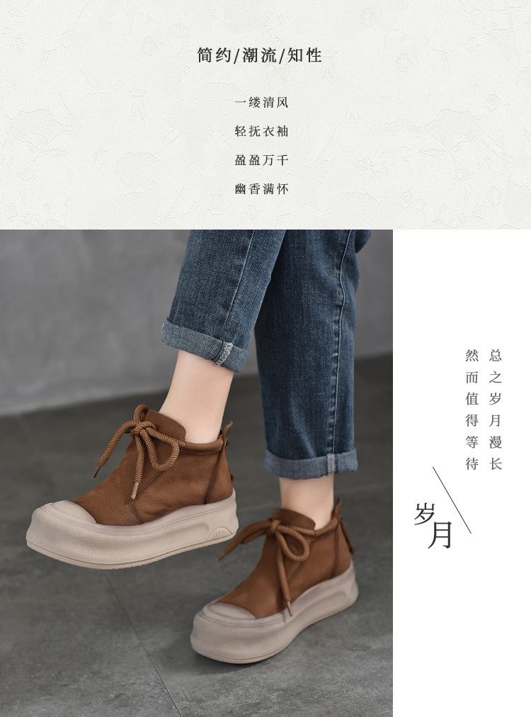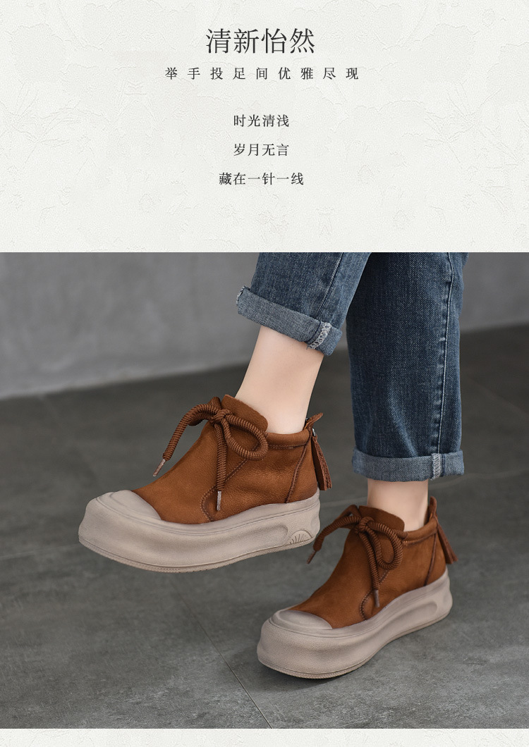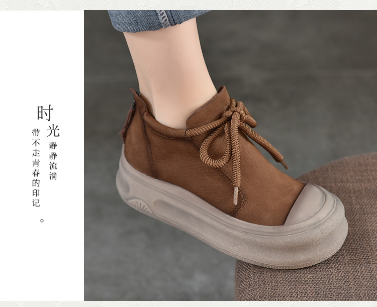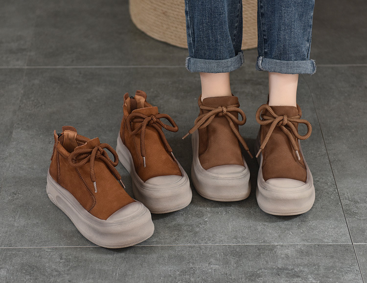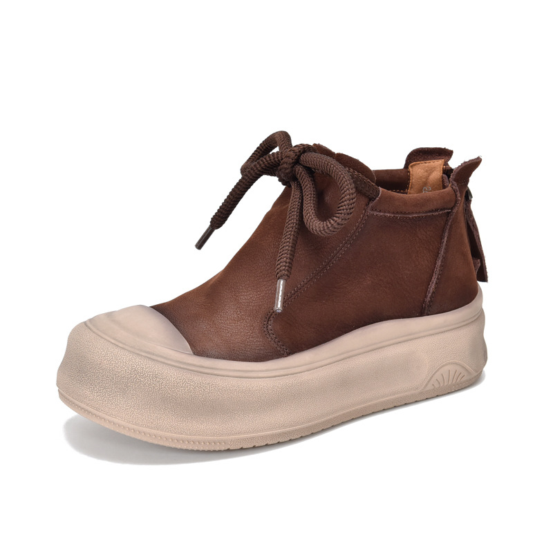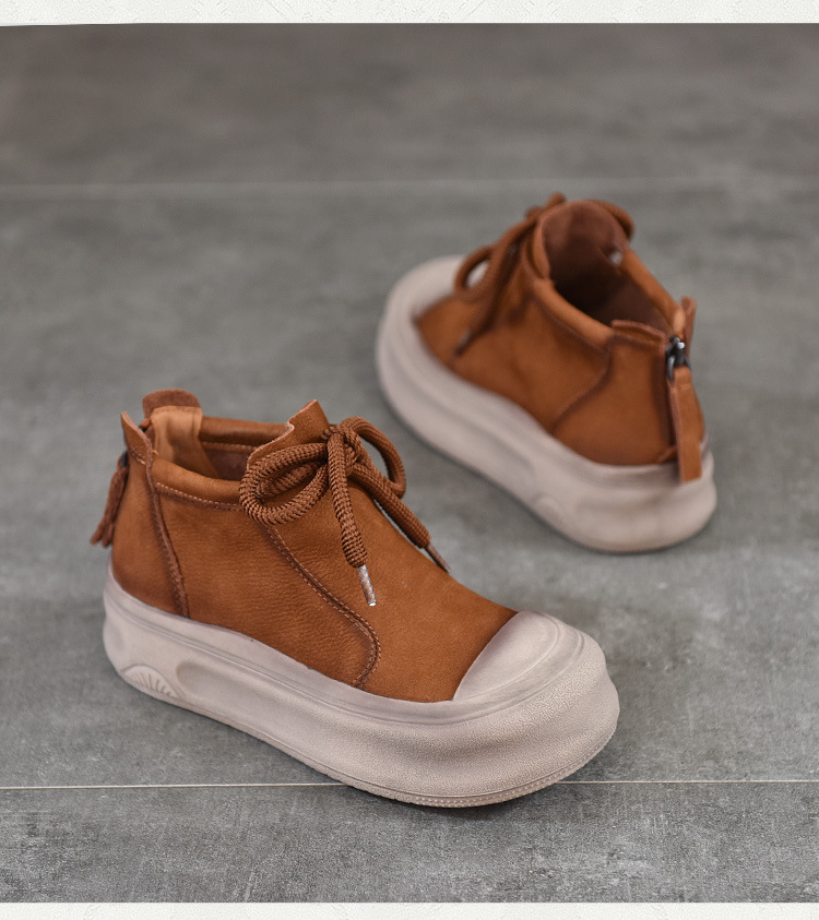 【특가 135】 천연 가죽 숏부츠 여성용 라운드토 캐주얼 하이탑 슈즈 1층 소가죽 마틴부츠 두꺼운 밑창