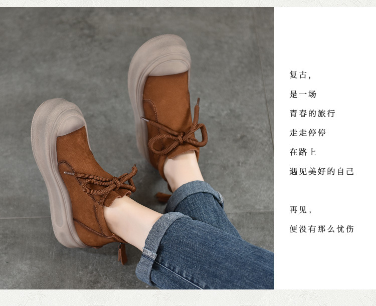 【특가 135】 천연 가죽 숏부츠 여성용 라운드토 캐주얼 하이탑 슈즈 1층 소가죽 마틴부츠 두꺼운 밑창스토어 가기