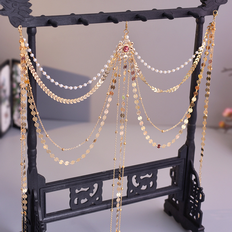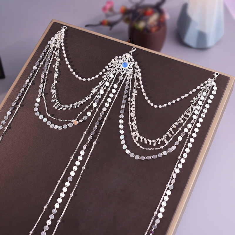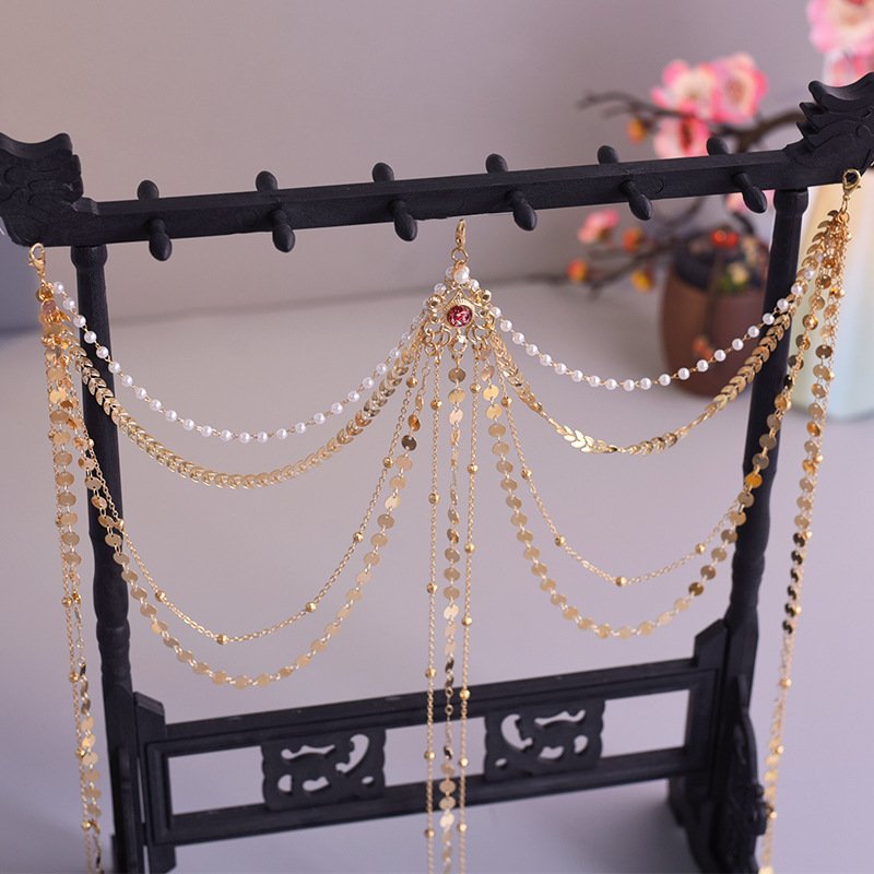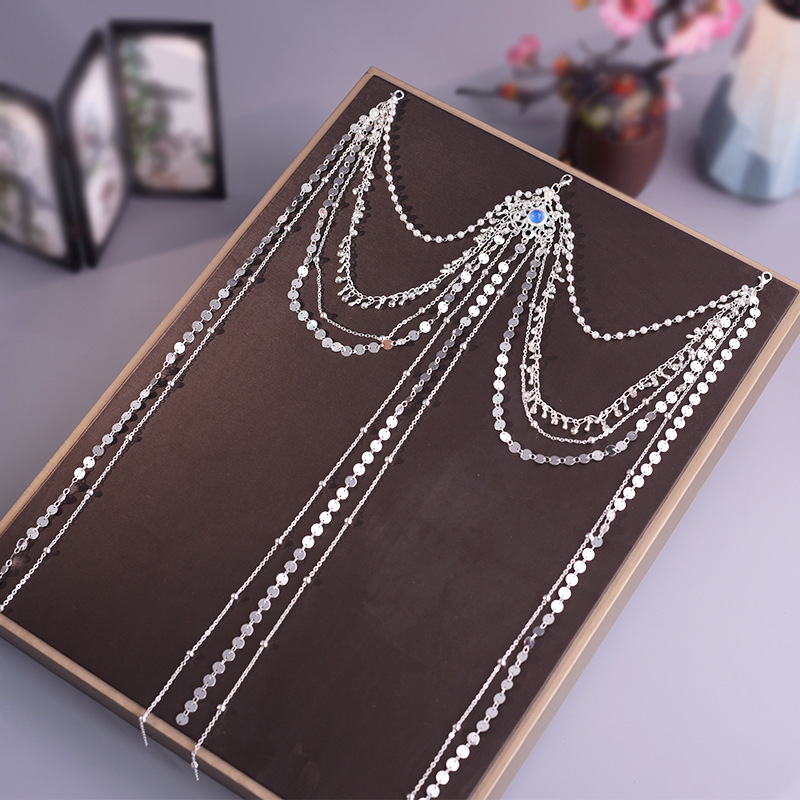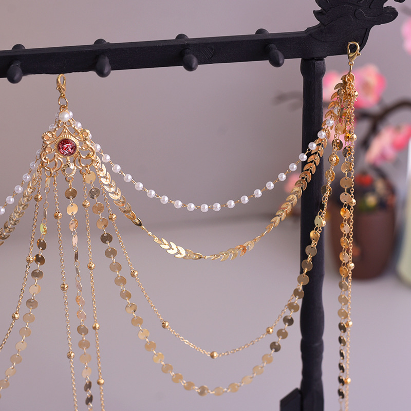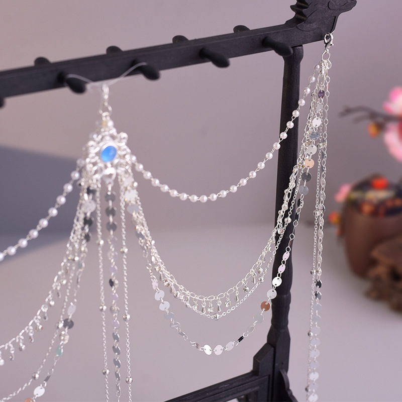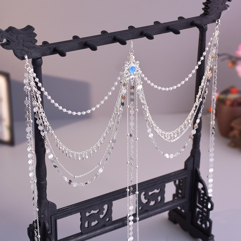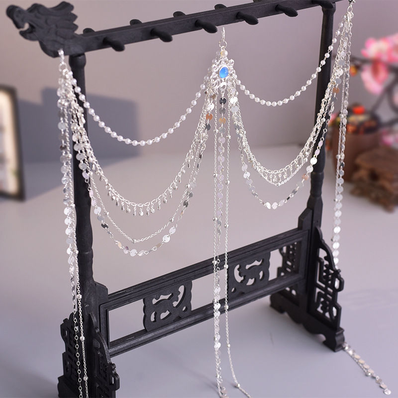 한푸 실버 허리 체인 허리 펜던트 골동품 스타일 압력 플랩 압력 진주 다목적 긴 술 장식 액세서리