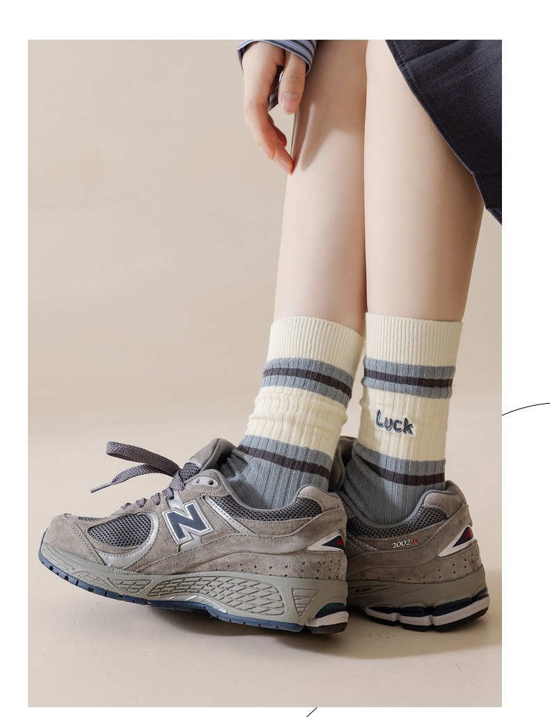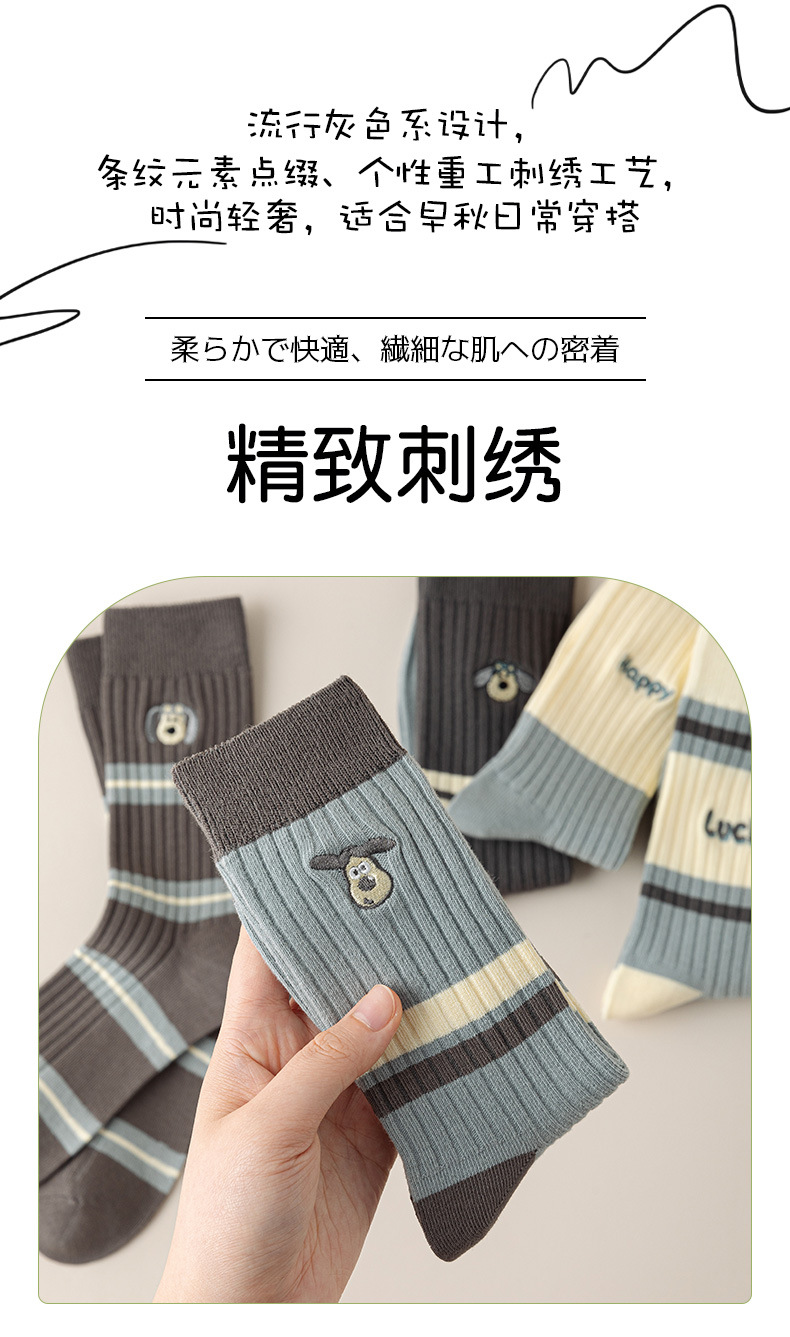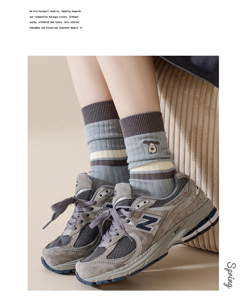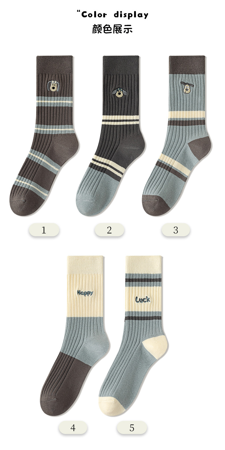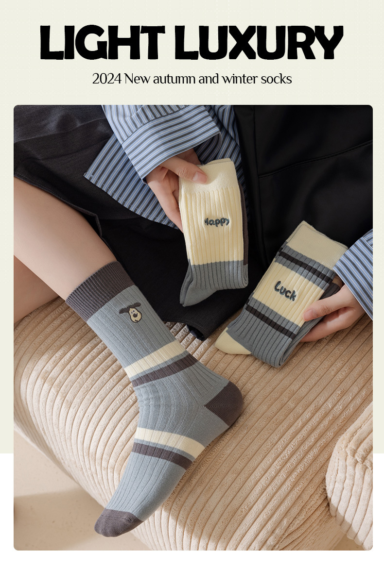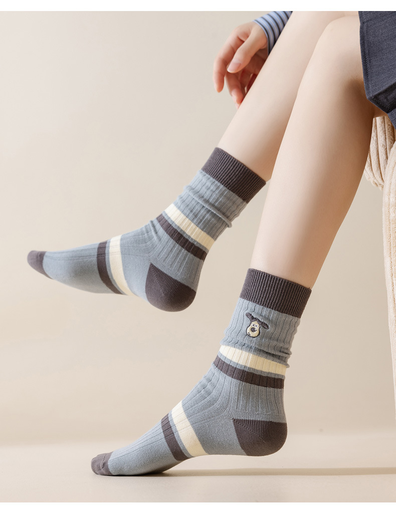 여성의 귀여운 강아지 영어 알파벳 자수 가을 더블 바늘 땀 흡수 여성을위한 통기성 올 매치 코튼 양말