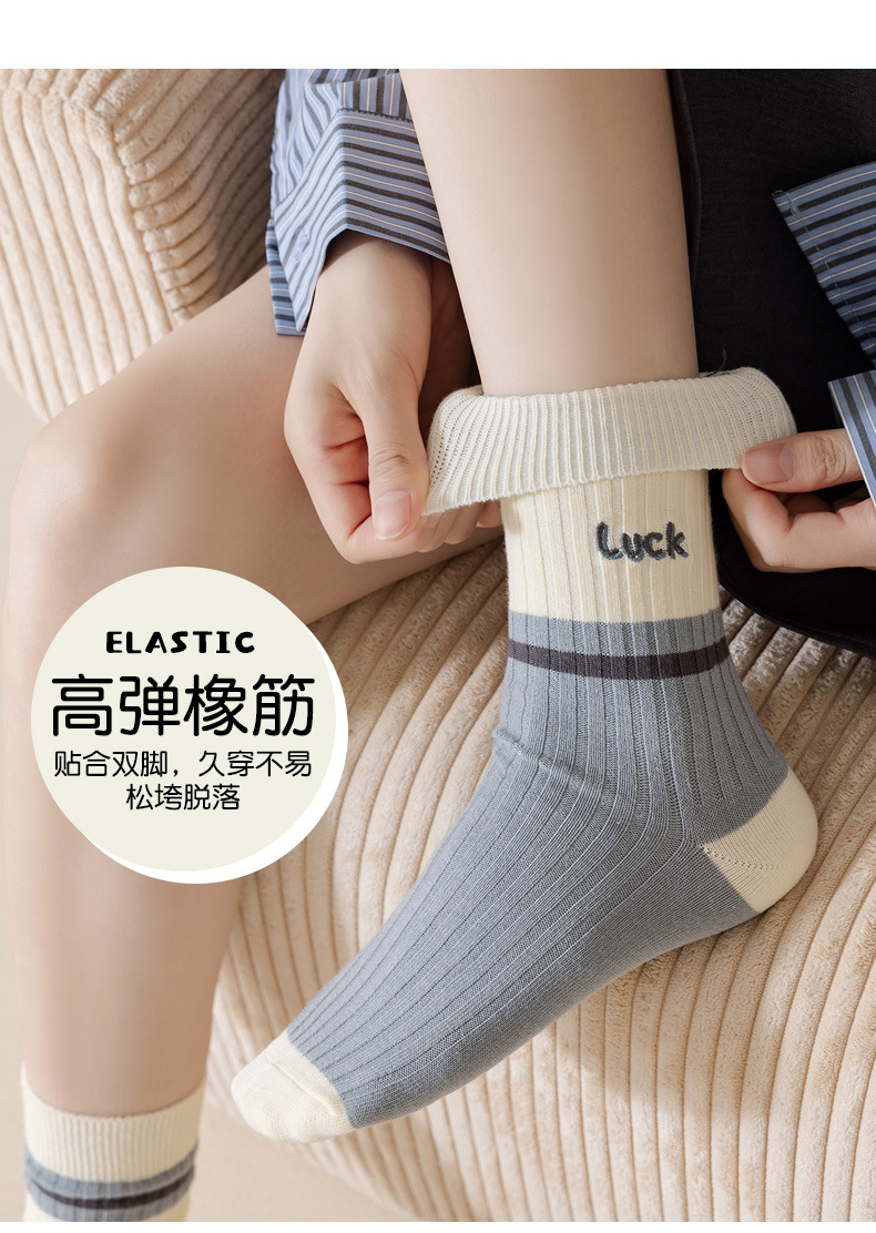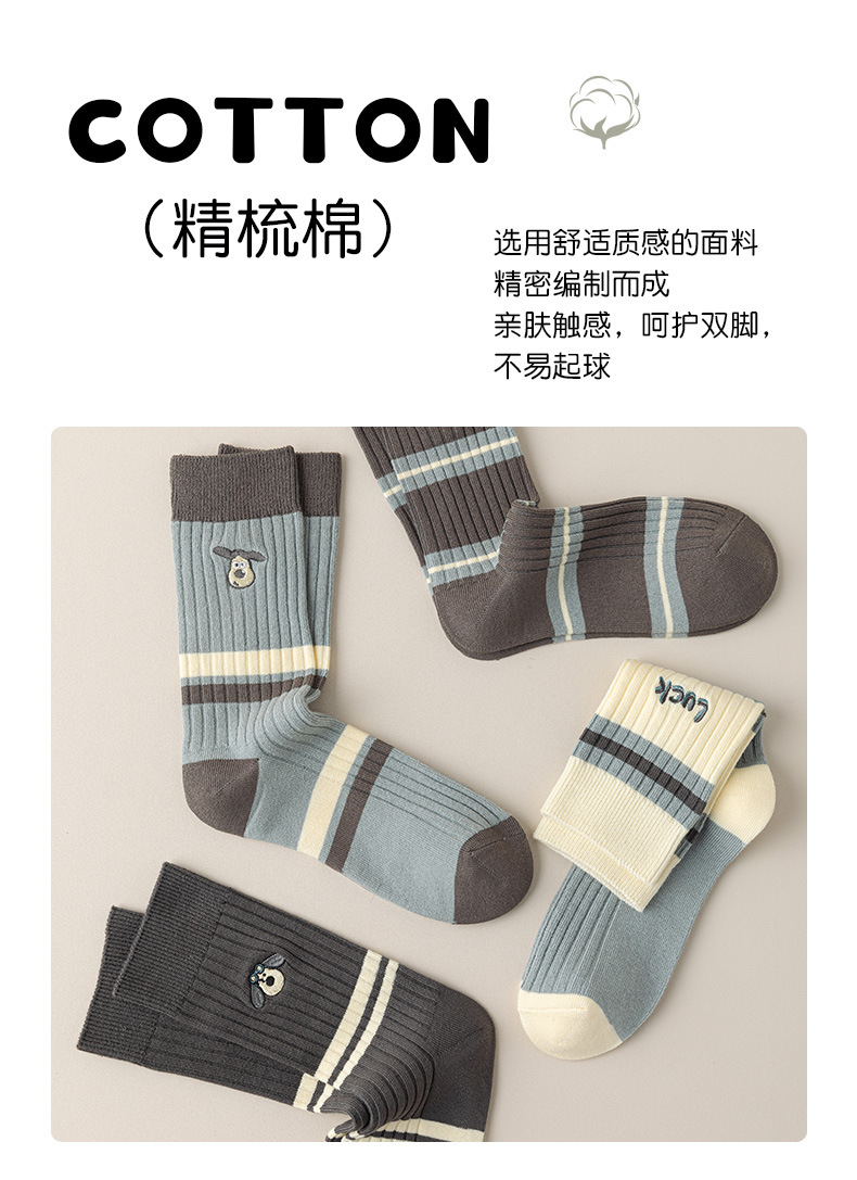 여성의 귀여운 강아지 영어 알파벳 자수 가을 더블 바늘 땀 흡수 여성을위한 통기성 올 매치 코튼 양말스토어 가기