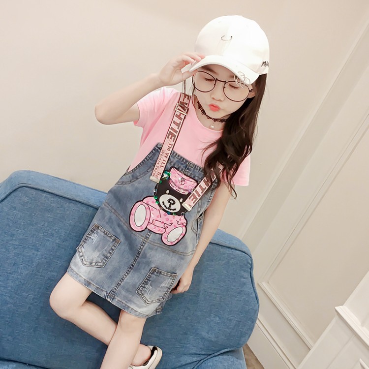女童背带裙套装2021新款夏装小女孩洋气时髦牛仔裙子儿童韩版网红