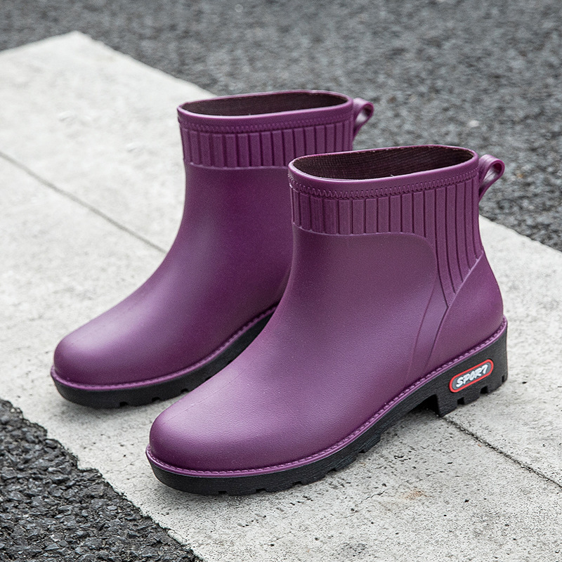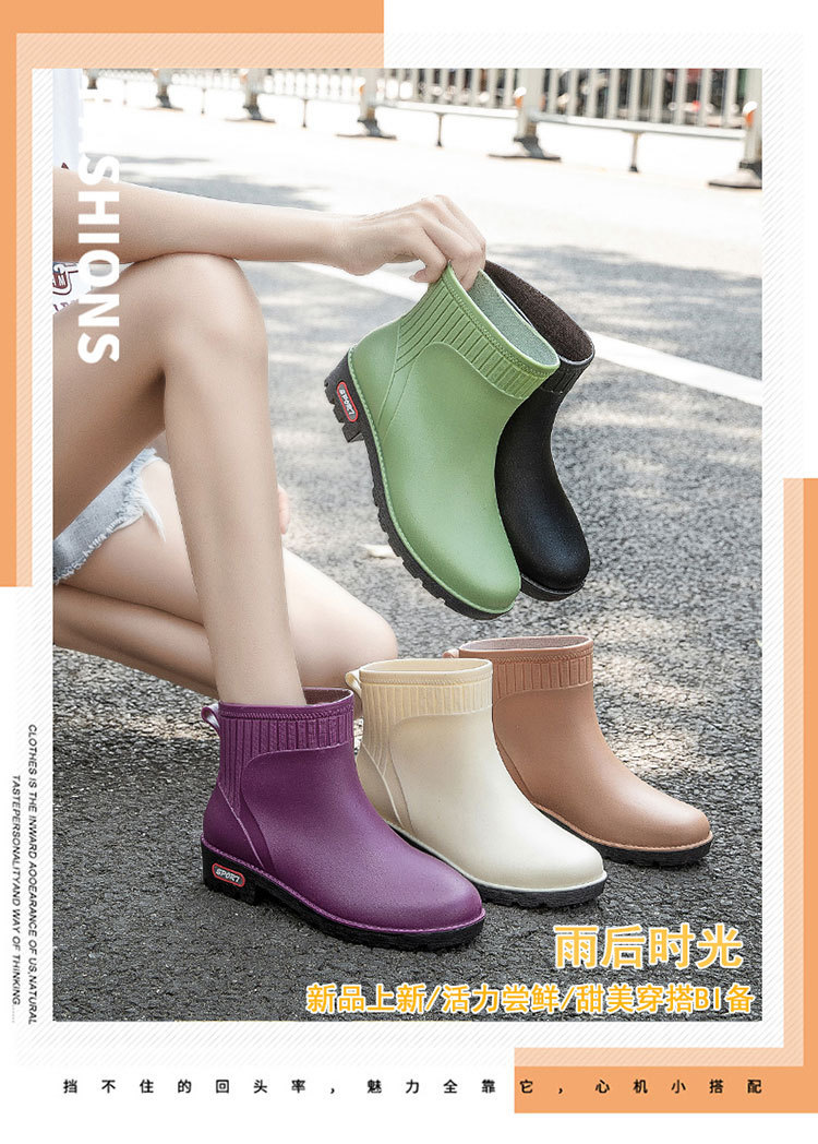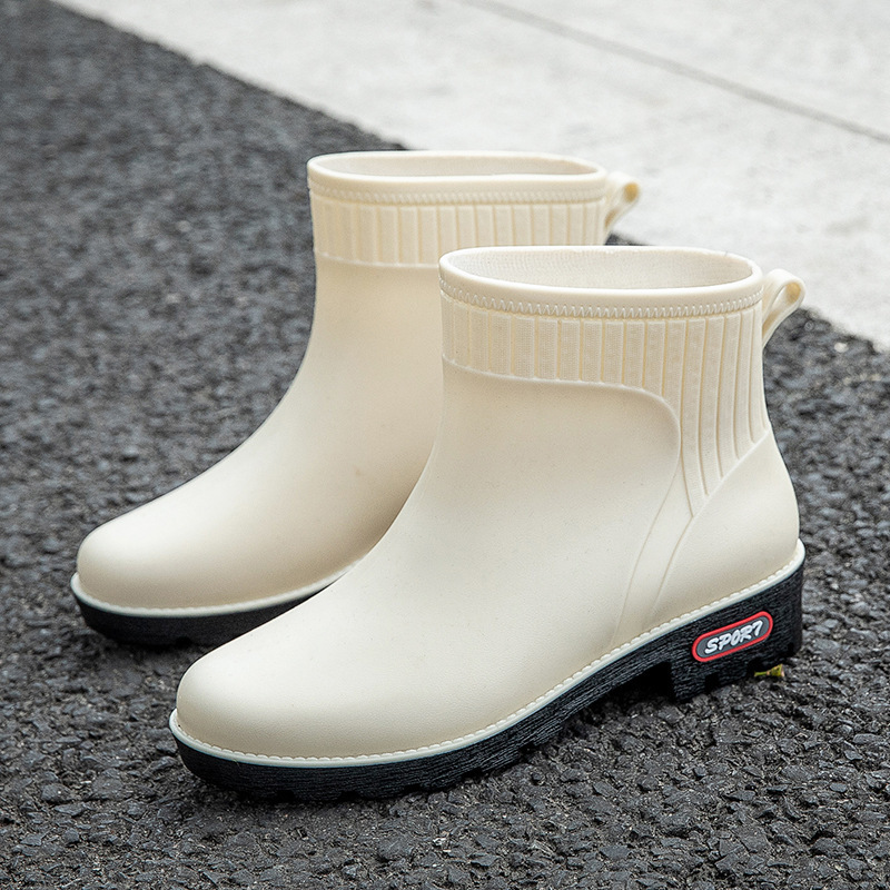 새로운 도착 짧은 튜브 패션 사계절 장화 여성 낮은 튜브 캐주얼 여성 비 부츠 PVC 작업 주방 물 신발 여성