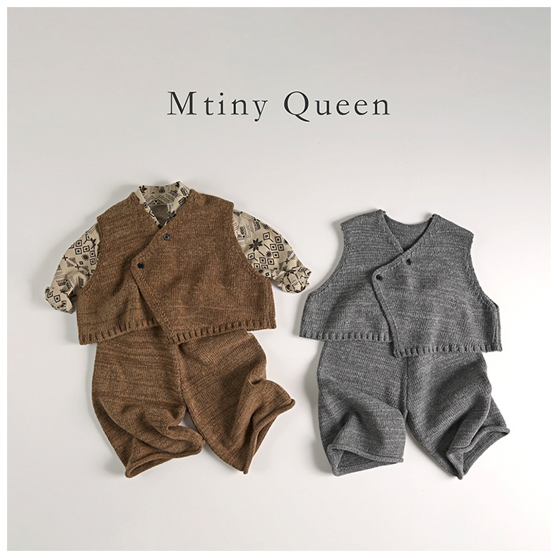 오리지널 디자인 ~ 일본 봄과 가을 어린이 스웨터 느슨한 외국식 니트 세트 남성과 여성의 트렌디 한 보물 니트 바지 세트