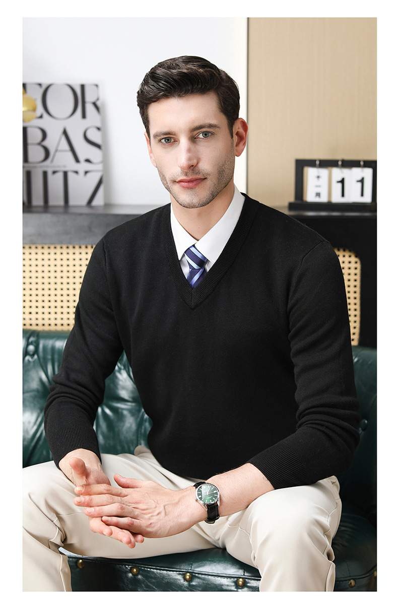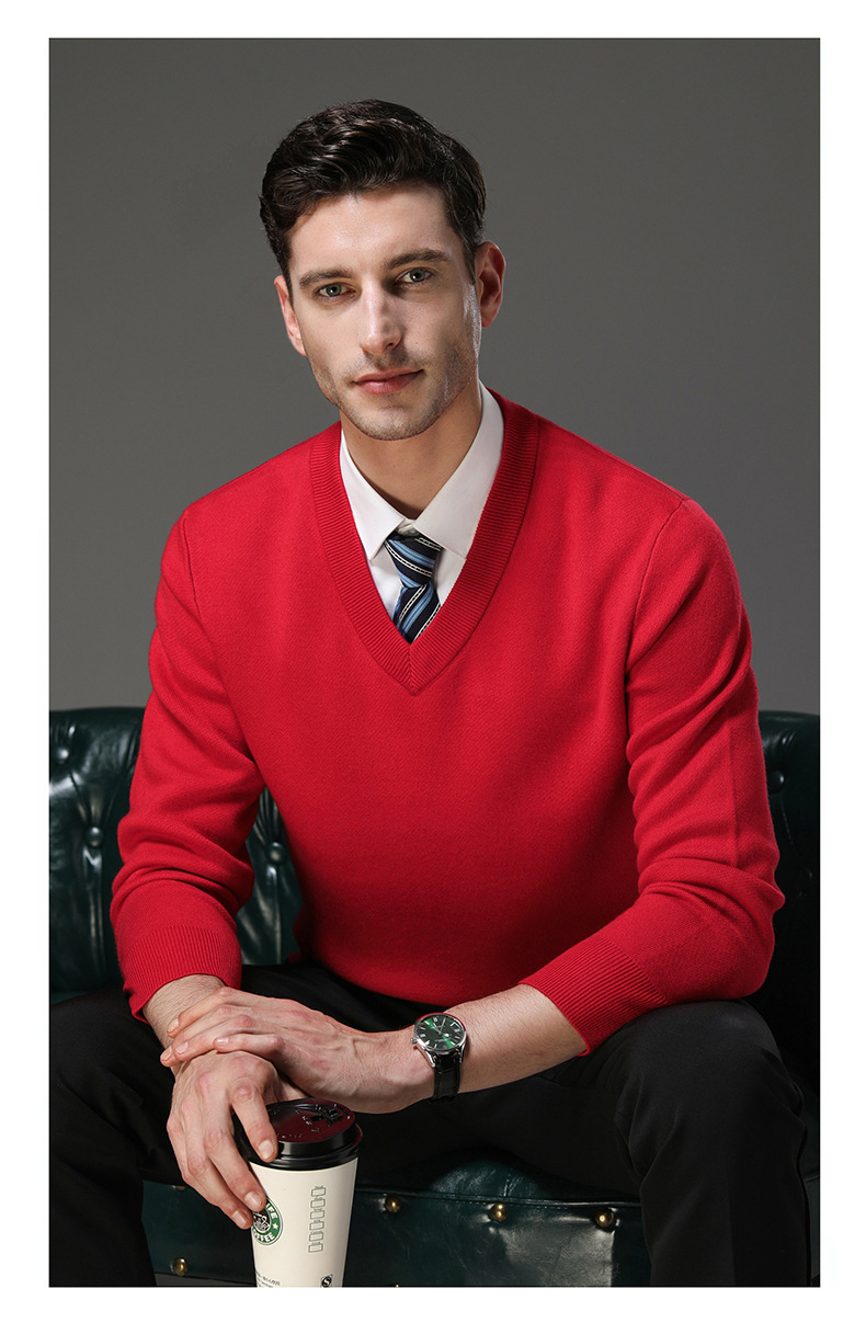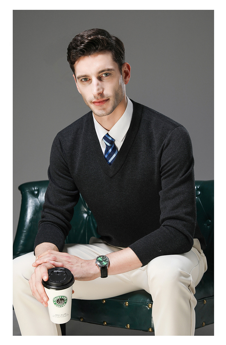 Puyuan 30% 메리노 스웨터 남성 가을과 겨울 새로운 두꺼운 따뜻한 스웨터 V 넥 긴팔 스웨터 500g스토어 가기