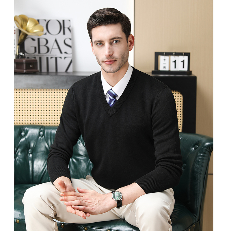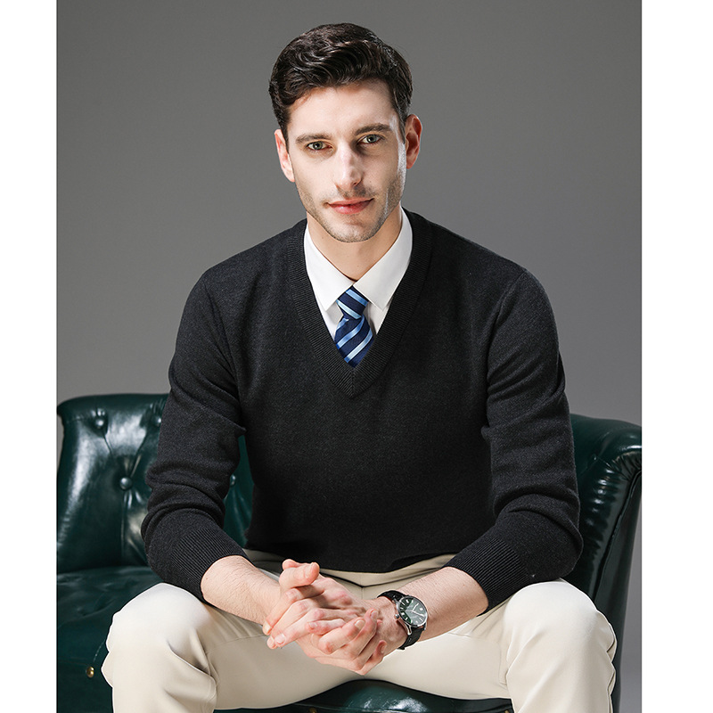 Puyuan 30% 메리노 스웨터 남성 가을과 겨울 새로운 두꺼운 따뜻한 스웨터 V 넥 긴팔 스웨터 500g
