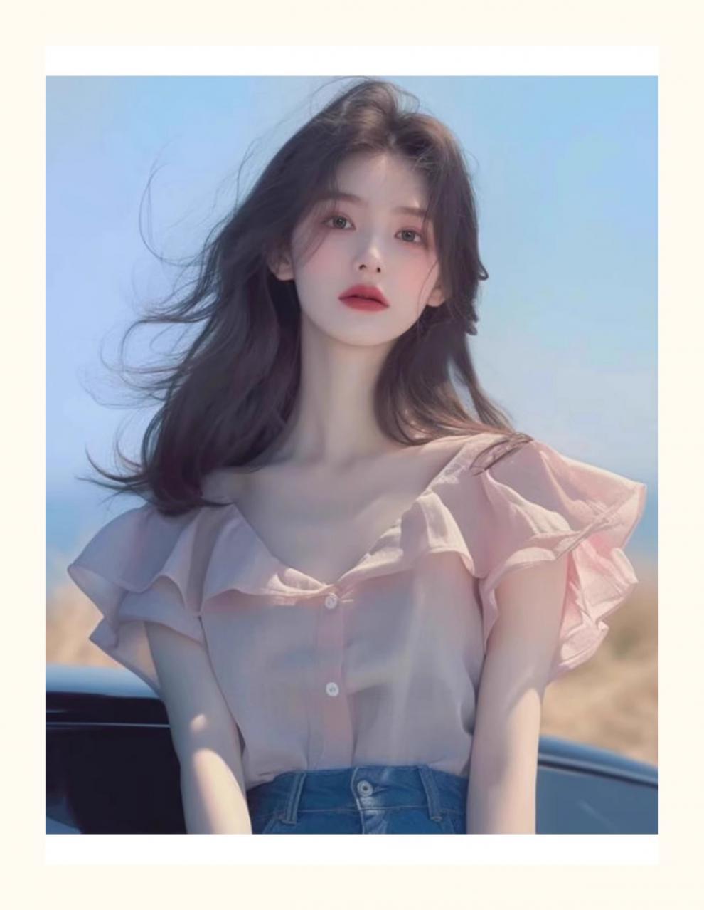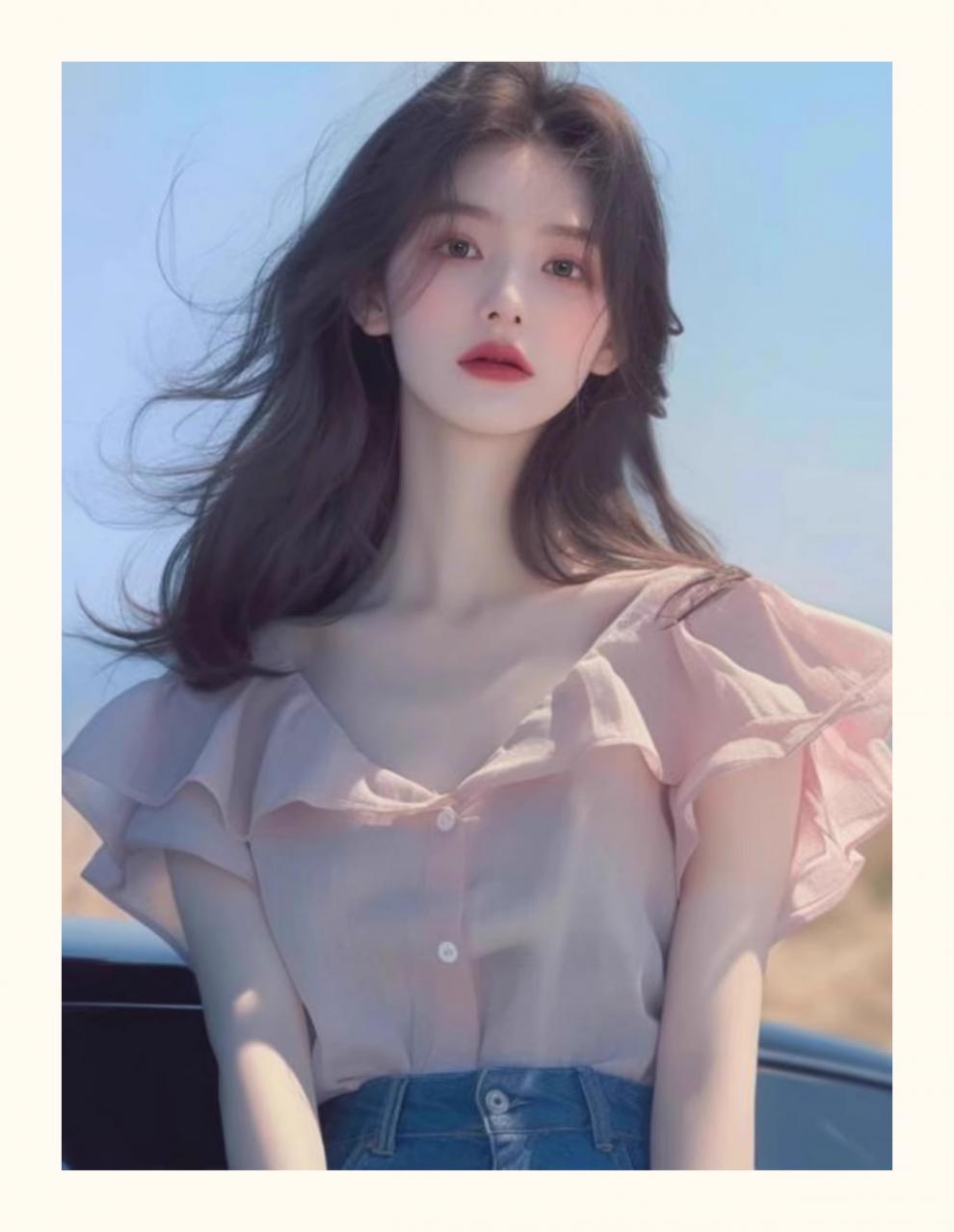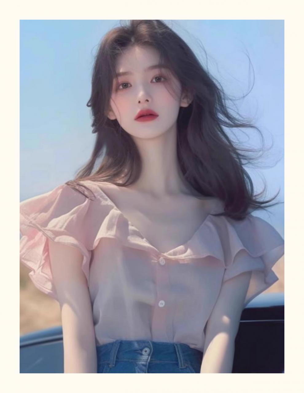 올해 인기있는 아름다운 쉬폰 셔츠 여성 틈새 독특한 세련된 한국 달콤한 핑크 프릴 V 넥 셔츠
