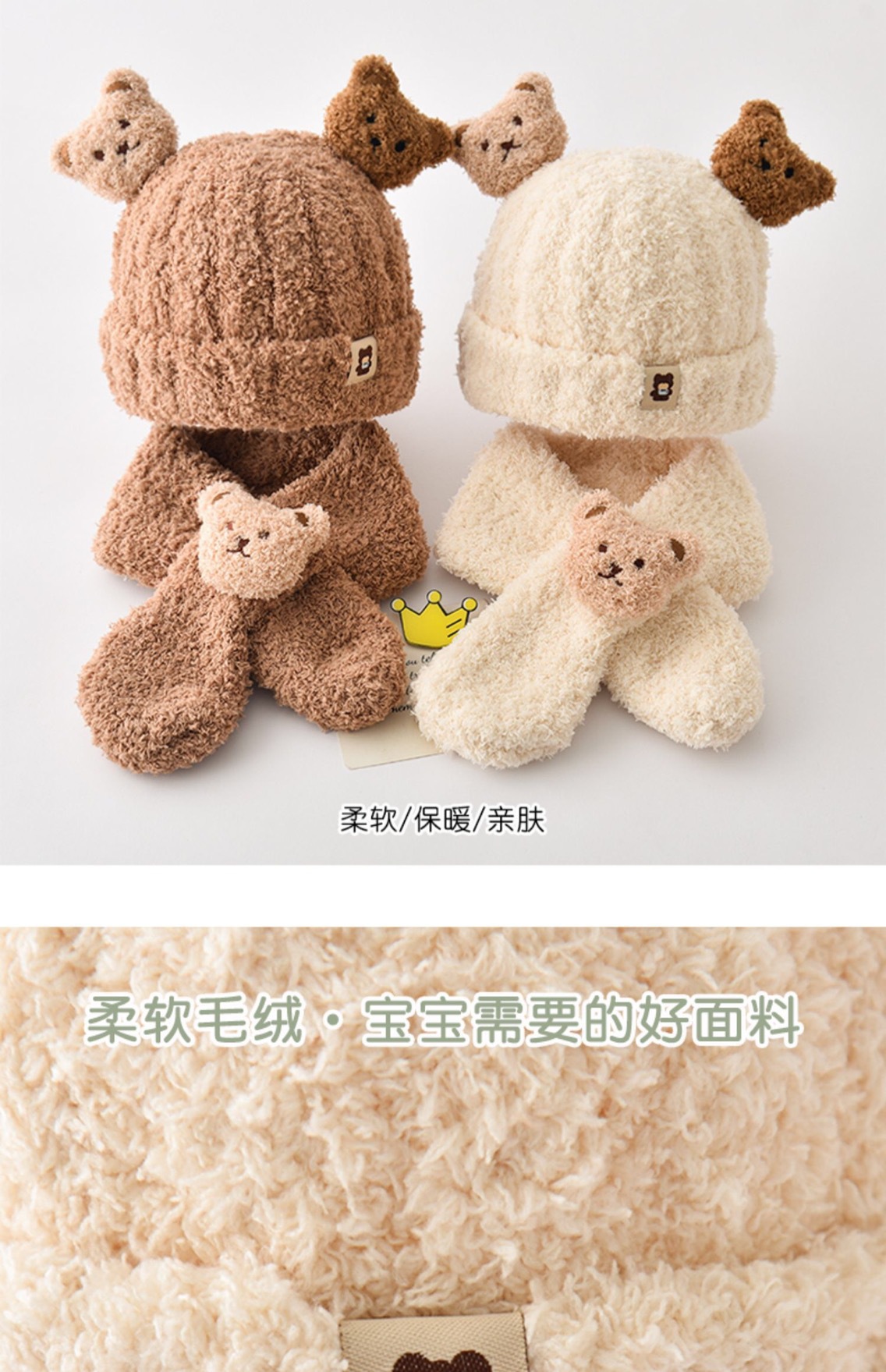 곰 봉제 아기 모자 가을과 겨울 아기 모자 스카프 원피스 투피스 어린이 따뜻한 귀 보호 캡 슈퍼 귀여운