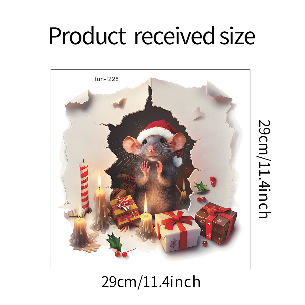 Fun-f228 크리스마스 구멍 마우스 선물 상자 침실 거실 연구 배경 미화 벽 스티커 도매스토어 가기