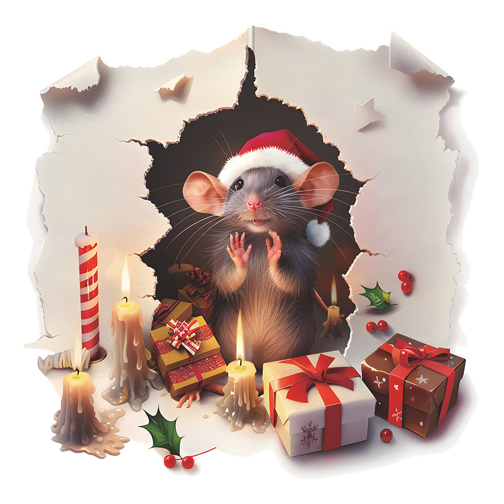 Fun-f228 크리스마스 구멍 마우스 선물 상자 침실 거실 연구 배경 미화 벽 스티커 도매