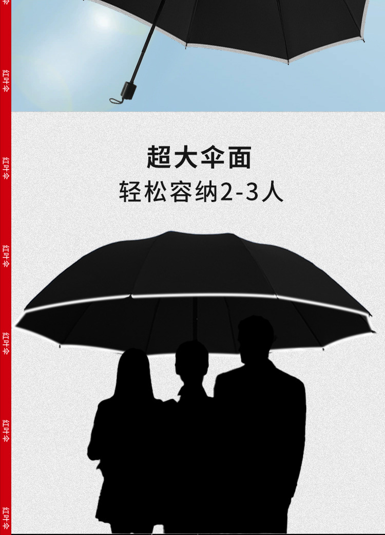강화 사업 접이식 광고 우산 남성과 여성의 안티 자외선 비 이중 목적 우산 반사 스트립 로고 증가