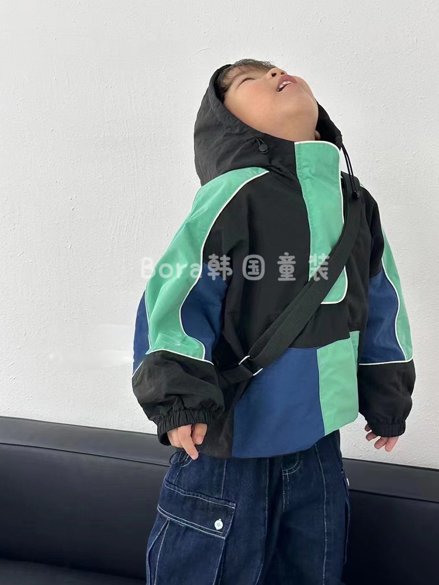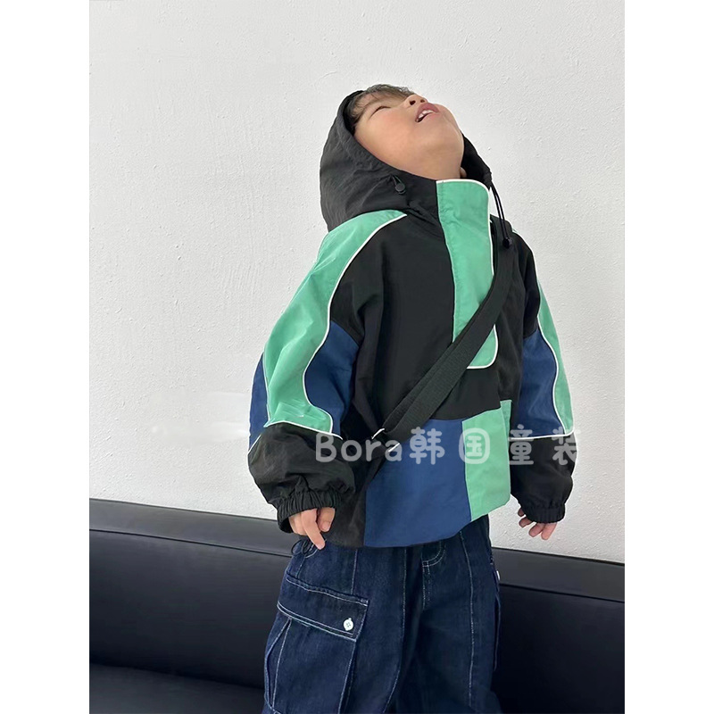 남아용 재킷, 아동용 2025년 봄 신상품, 멋스럽고 패셔너블한 재킷, 베이비 컬러 블록, 서양식 인터넷 연예인 재킷, 트렌디스토어 가기