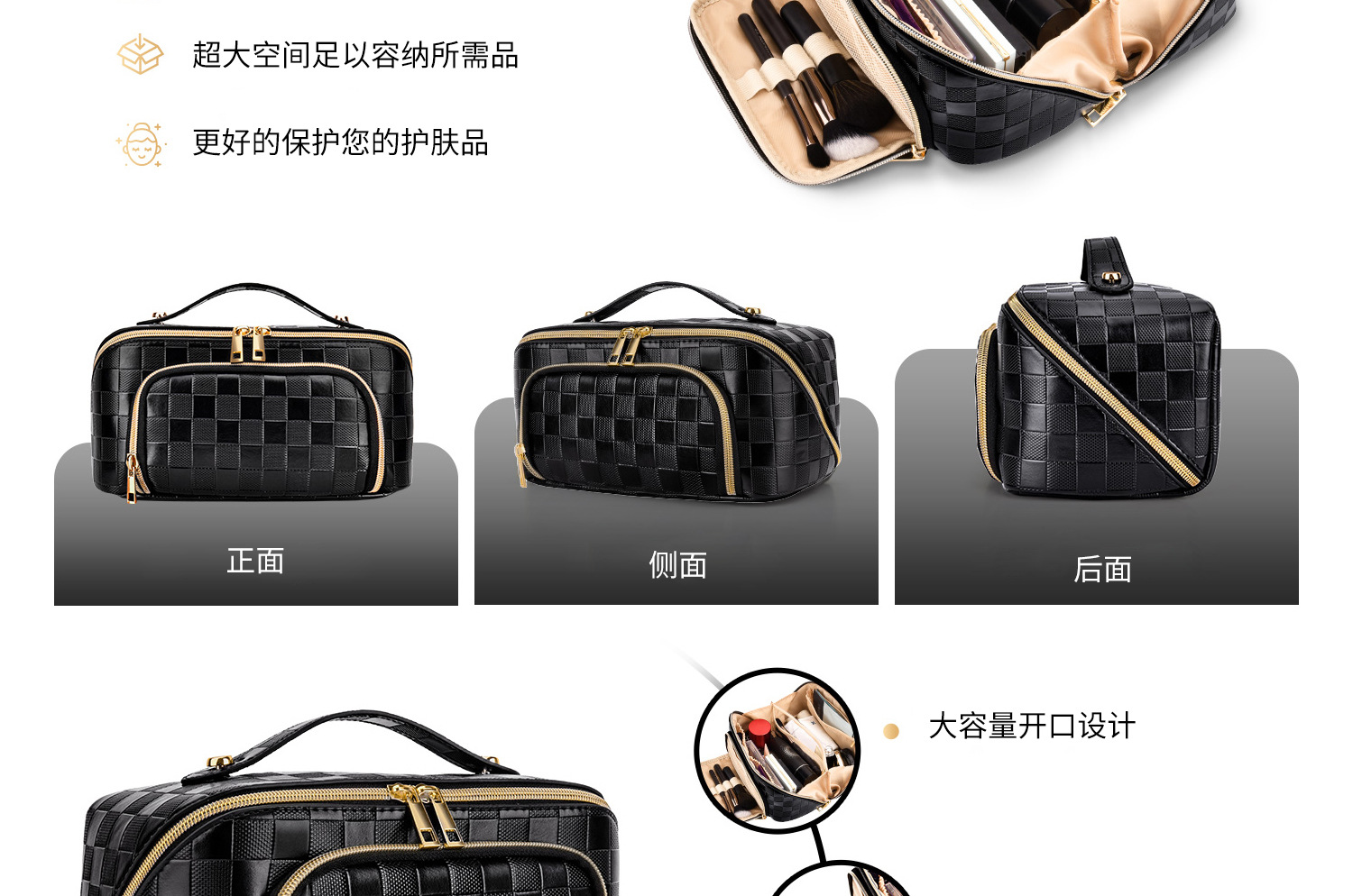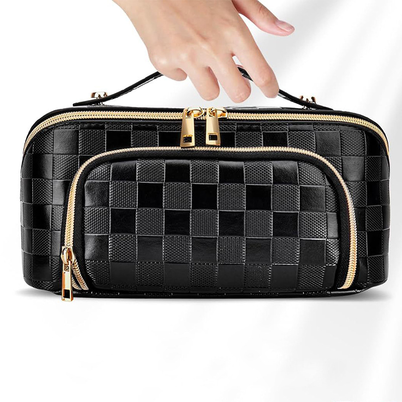 높은 미용 가치 체커 보드 베개 화장품 가방 대용량 더블 레이어 화장품 가방 휴대용 화장실 가방 다이아몬드 화장품 가방