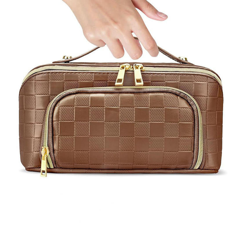 높은 미용 가치 체커 보드 베개 화장품 가방 대용량 더블 레이어 화장품 가방 휴대용 화장실 가방 다이아몬드 화장품 가방스토어 가기