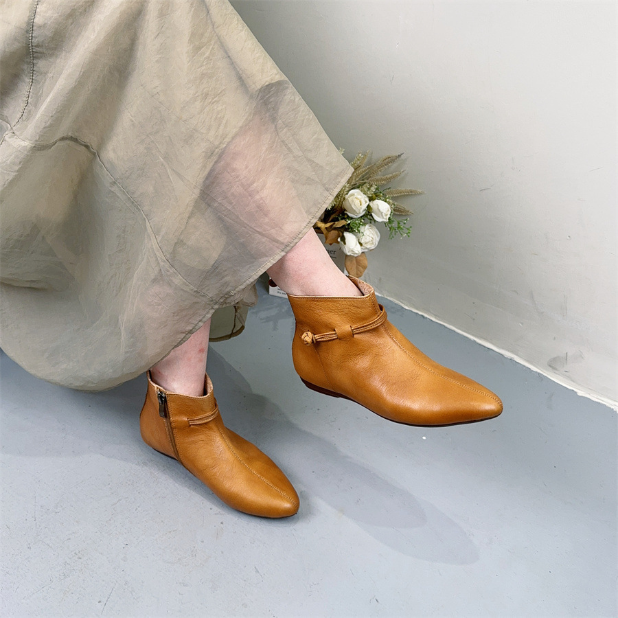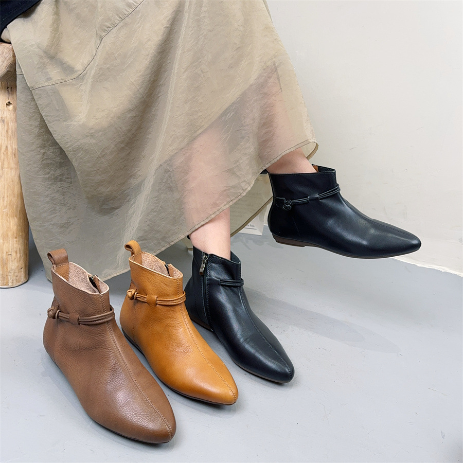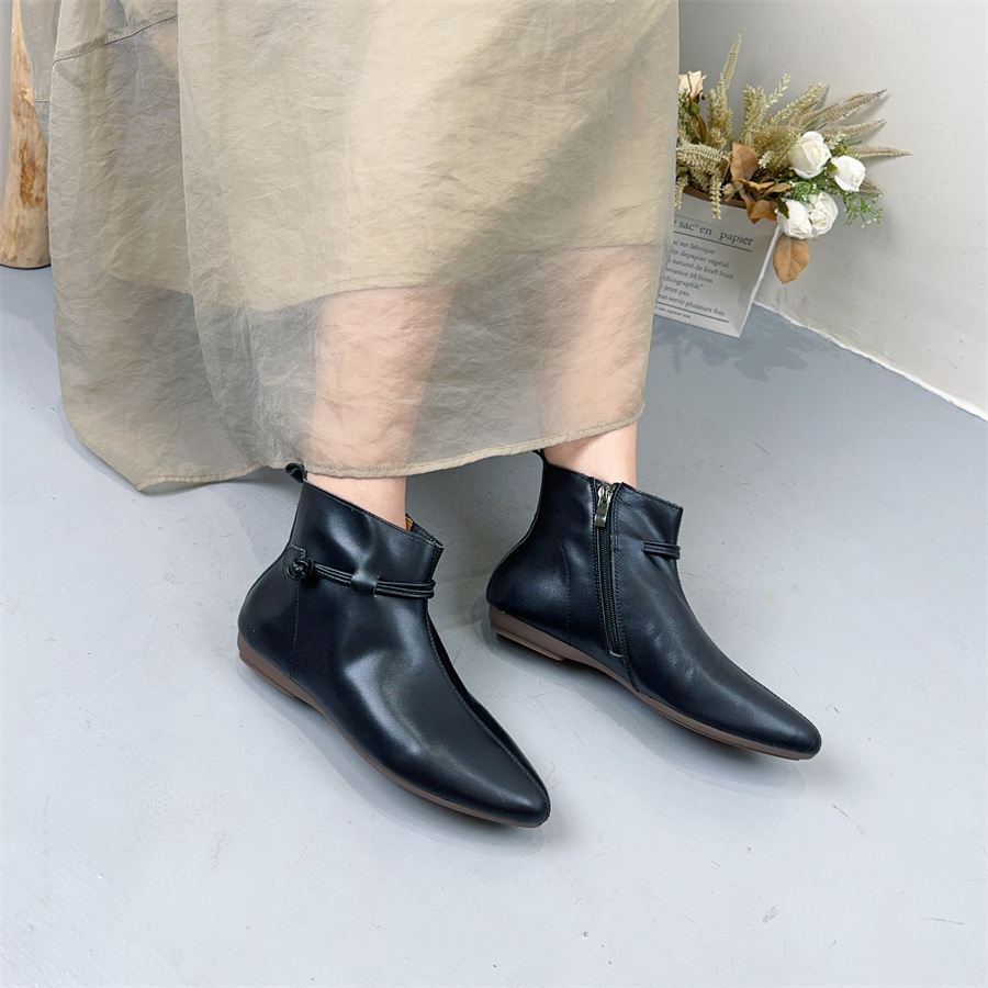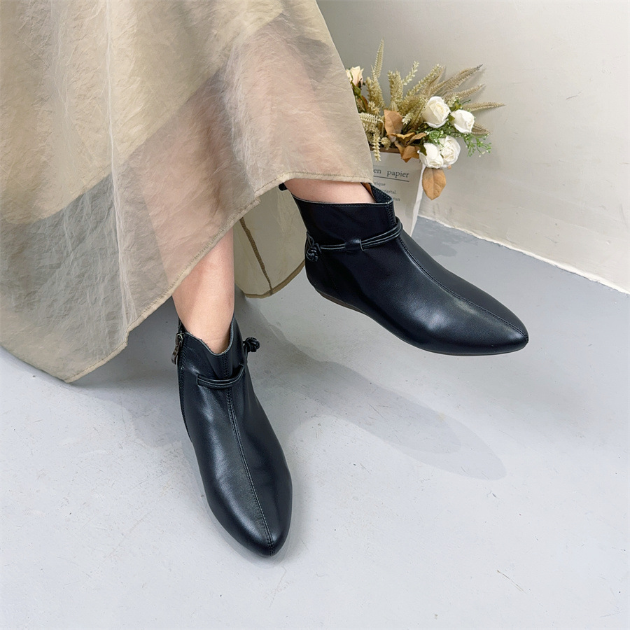 2024 새로운 빈티지 포인팅 쇼트 부츠 사이드 지퍼 여성용 플랫 뉴 싱글 부츠 정품 가죽 부츠스토어 가기