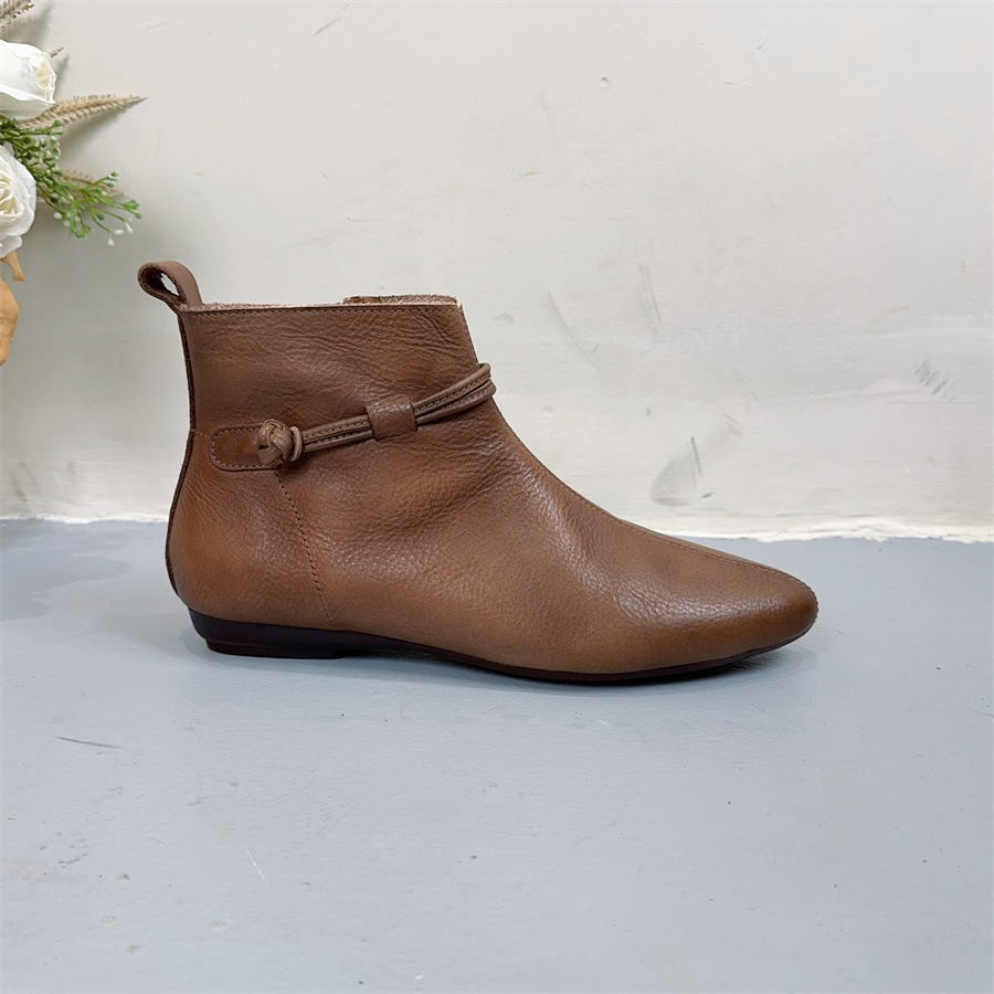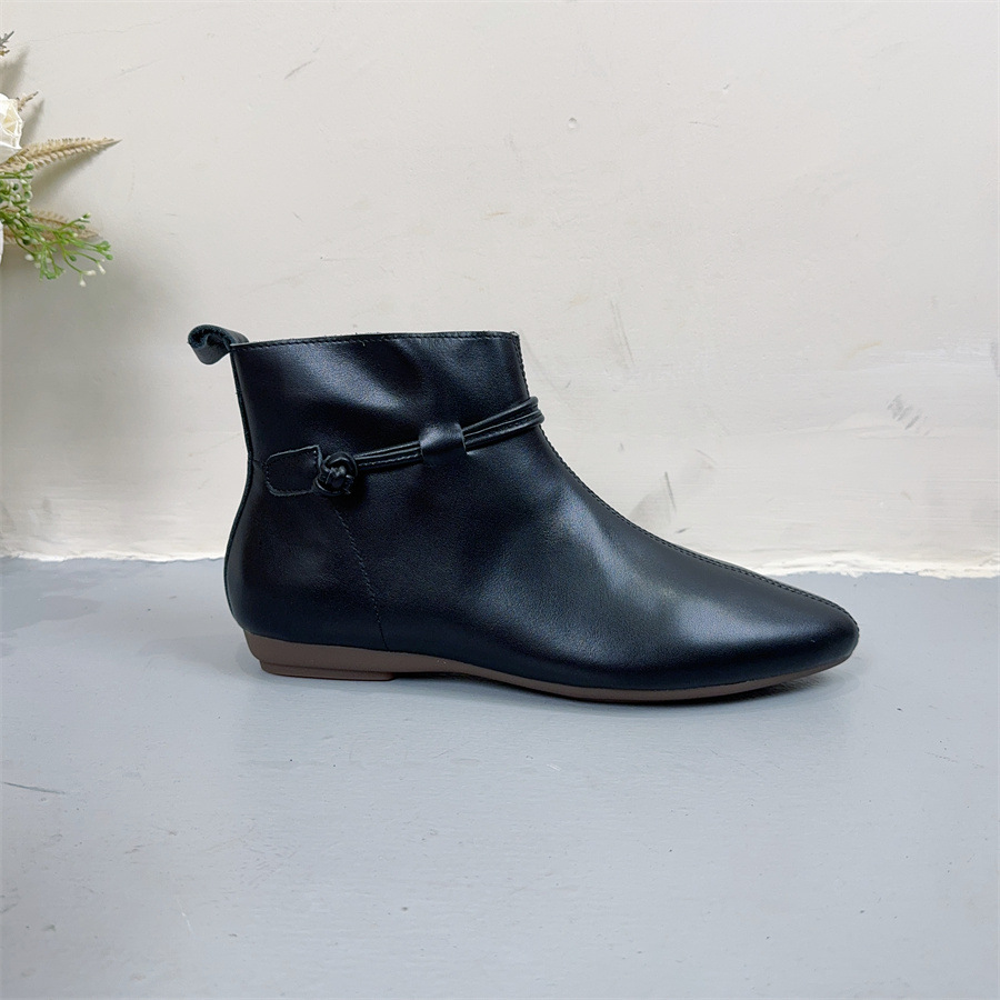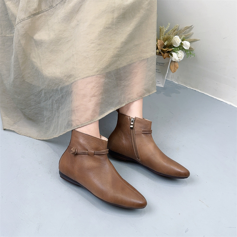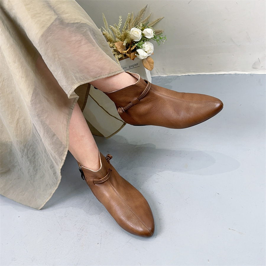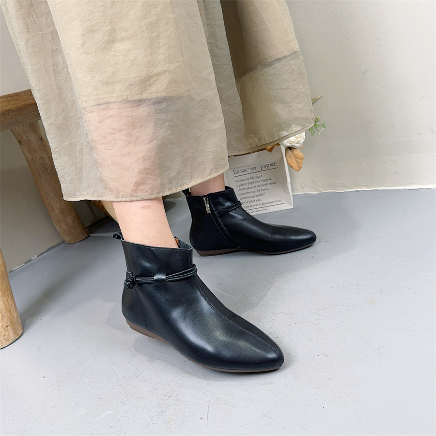 2024 새로운 빈티지 포인팅 쇼트 부츠 사이드 지퍼 여성용 플랫 뉴 싱글 부츠 정품 가죽 부츠스토어 가기