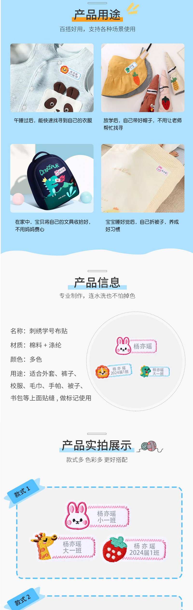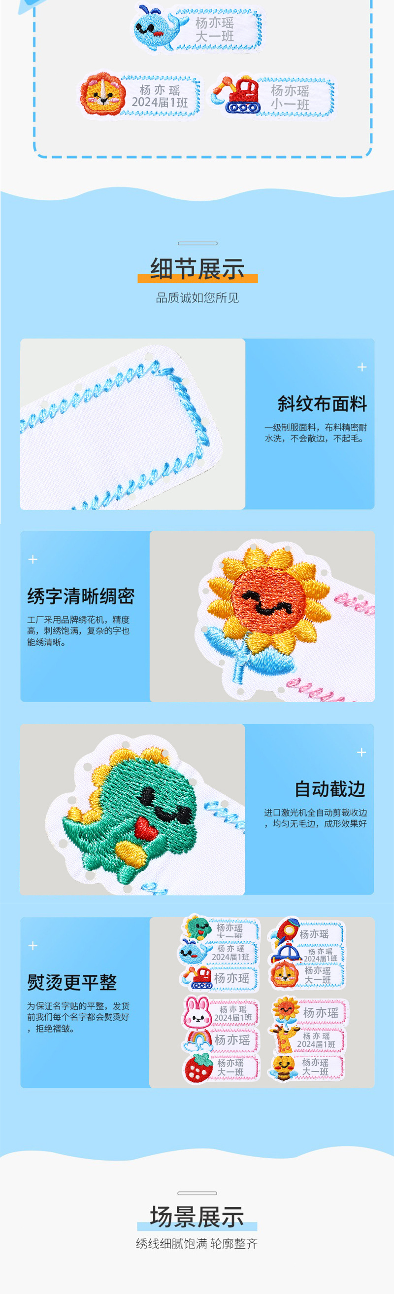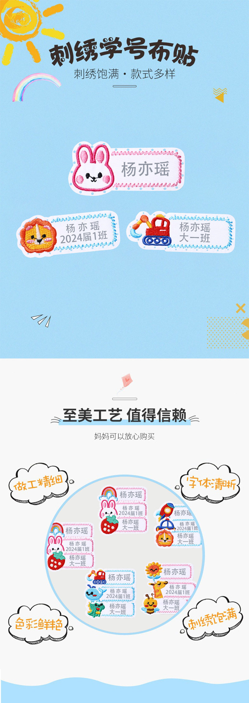 새로운 자수 이름 스티커 유치원 이름 클래스 스티커 어린이 봉제 천 스티커 핫 스티커 학교 유니폼 라벨 스티커 도매