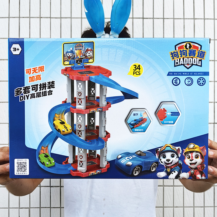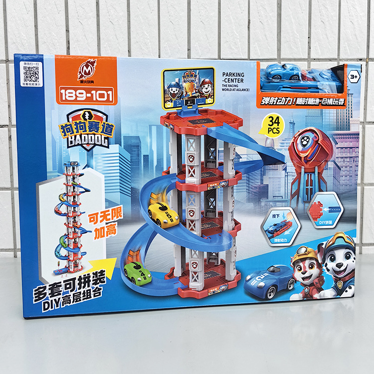 WA032063D 어린이용 고급 트랙 발사 주차장, 다층 회전 자동차 장난감 선물 (높이 조절 가능)스토어 가기