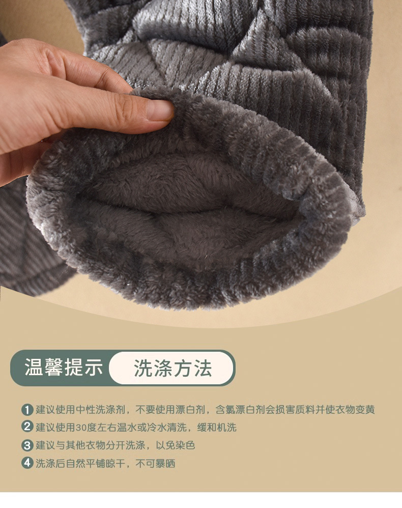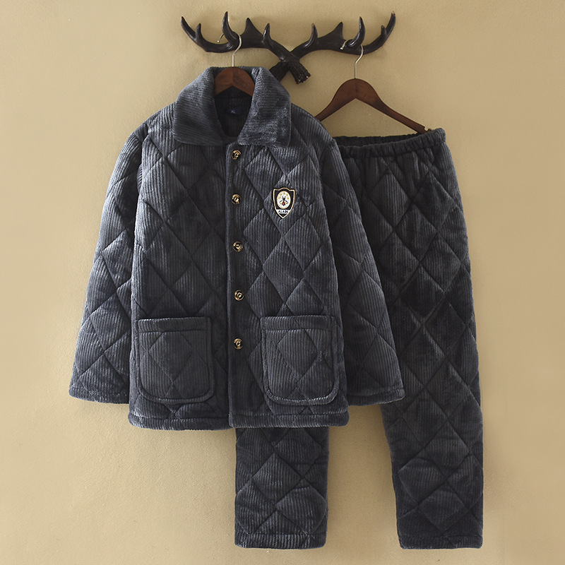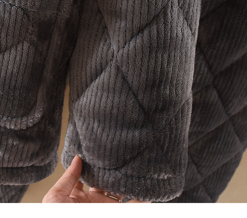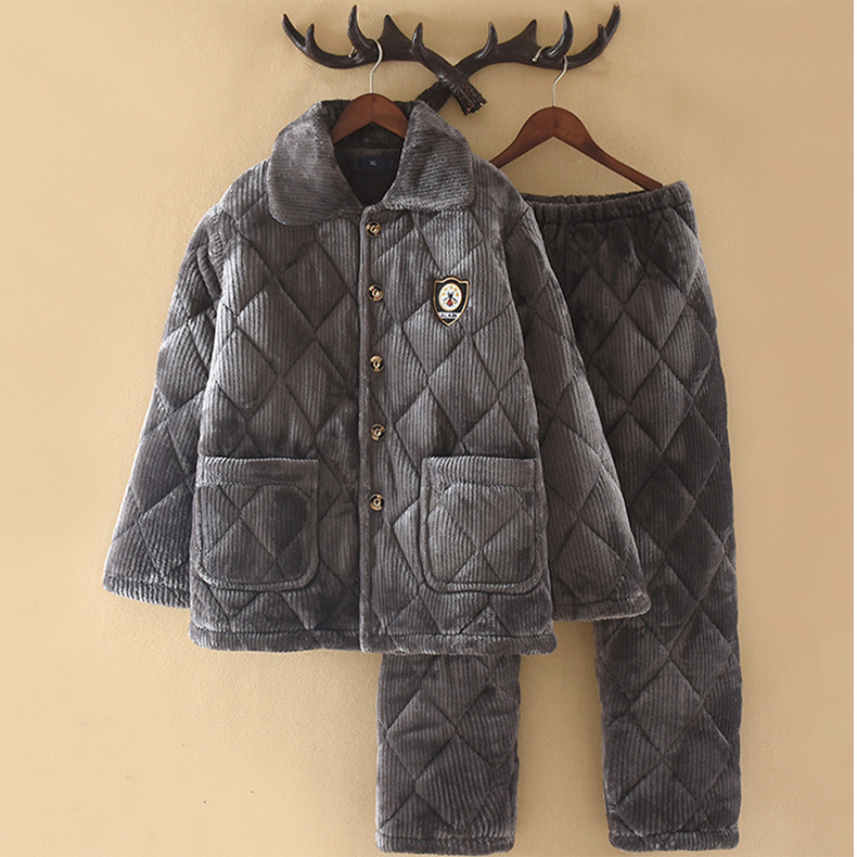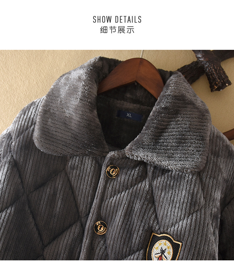옷깃 버튼 단색 중년 및 노인 남성 잠옷 겨울 따뜻한 면 기모 두꺼운 산호 양털 3 층 홈스토어 가기