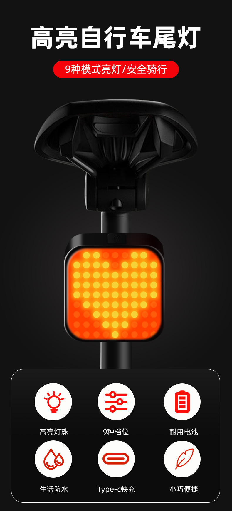 자전거 조명 창조적 인 테일 라이트 표현 조명 산악 자전거 타기 장비 알루미늄 합금 테일 라이트 경고등 자전거 조명