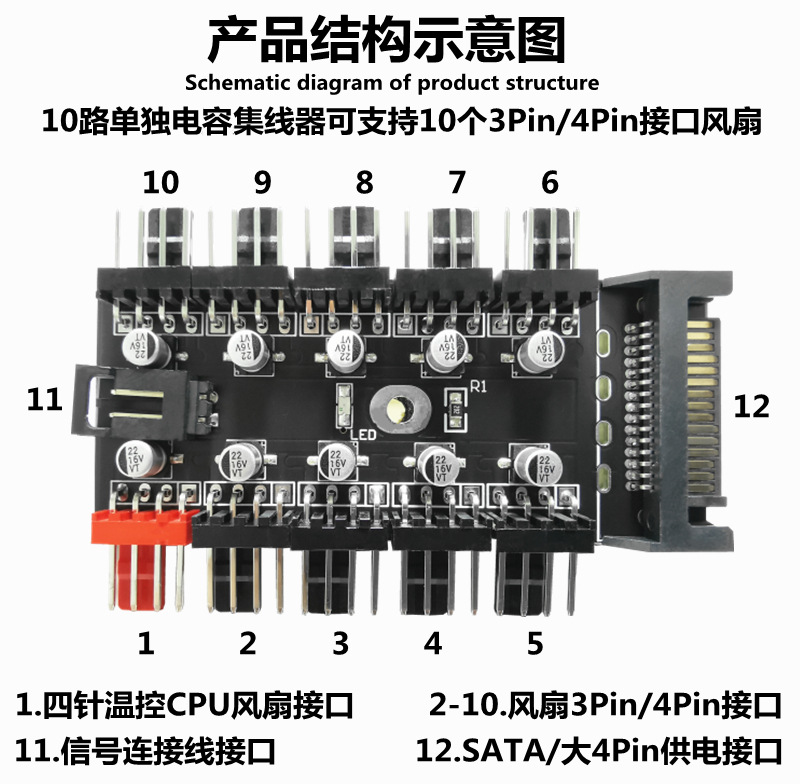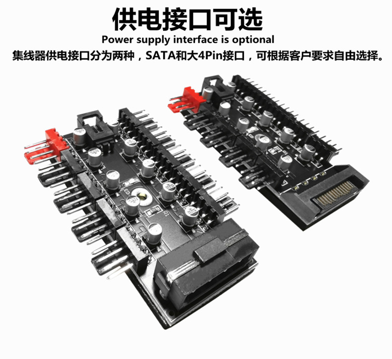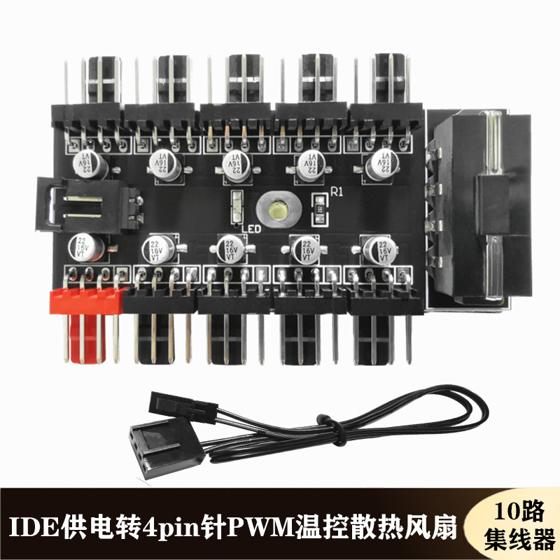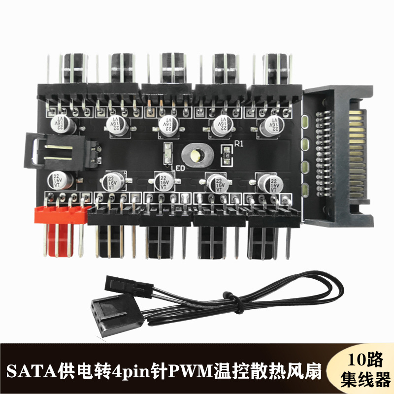 컴퓨터 케이스 IDE/SATA ~ 4Pin3/4P 핀 PWM 온도 제어 10방향 냉각 팬 확장 허브 허브