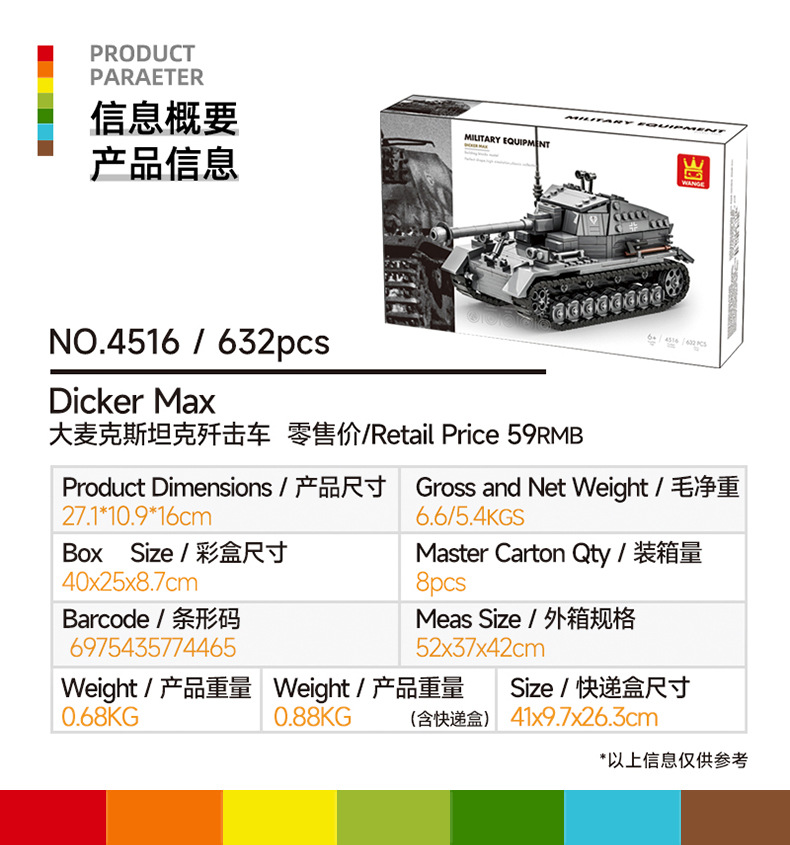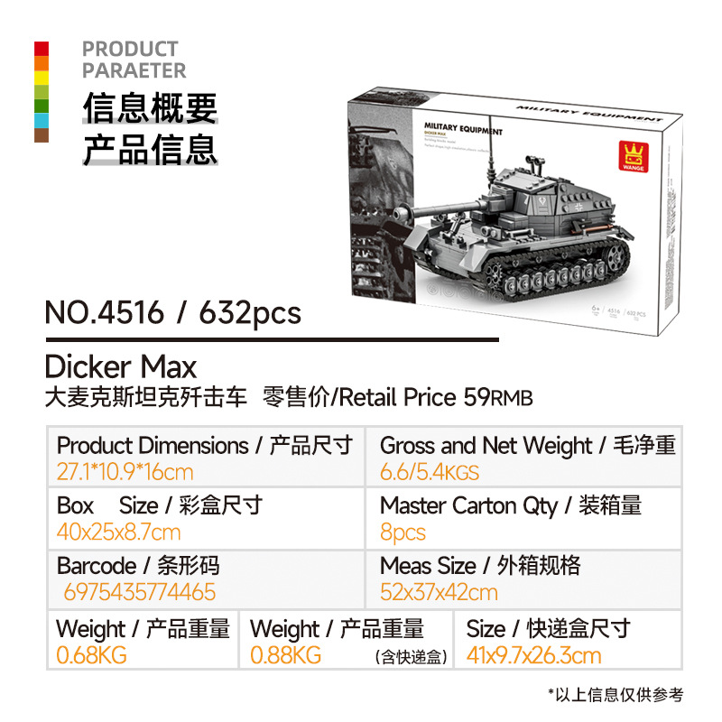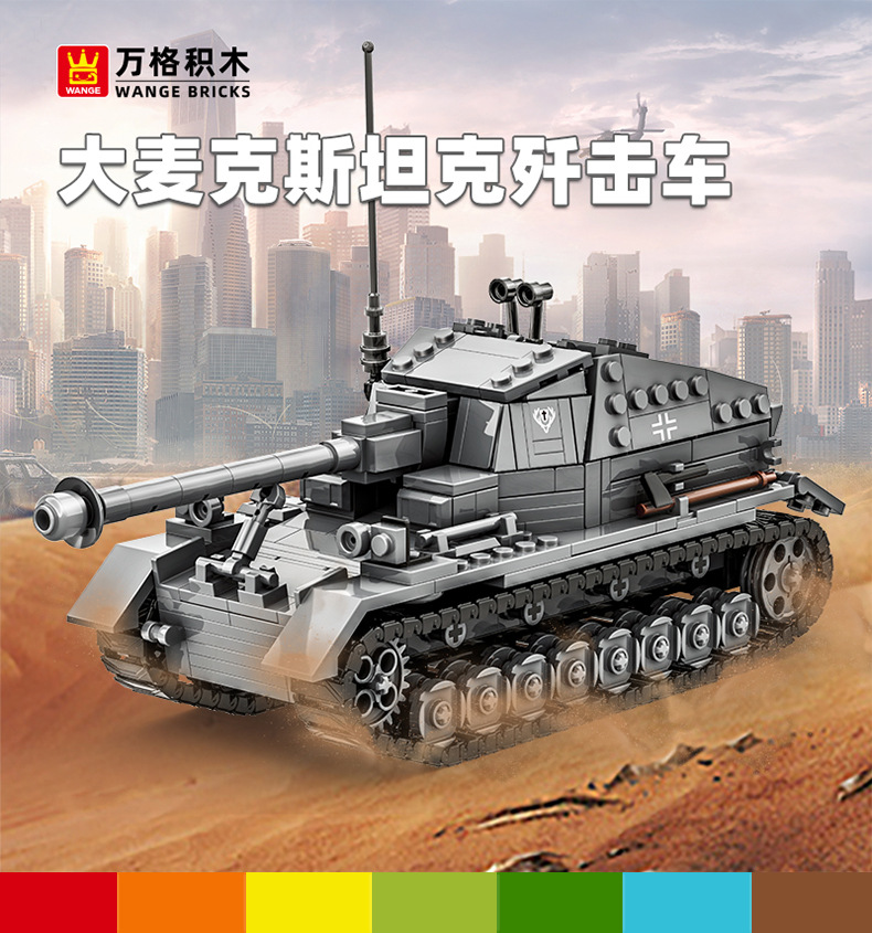 Wange 작은 입자 빌딩 블록 소년 장난감 어린이 6-12 세 군용 장갑차 모델 빅 맥스탄크