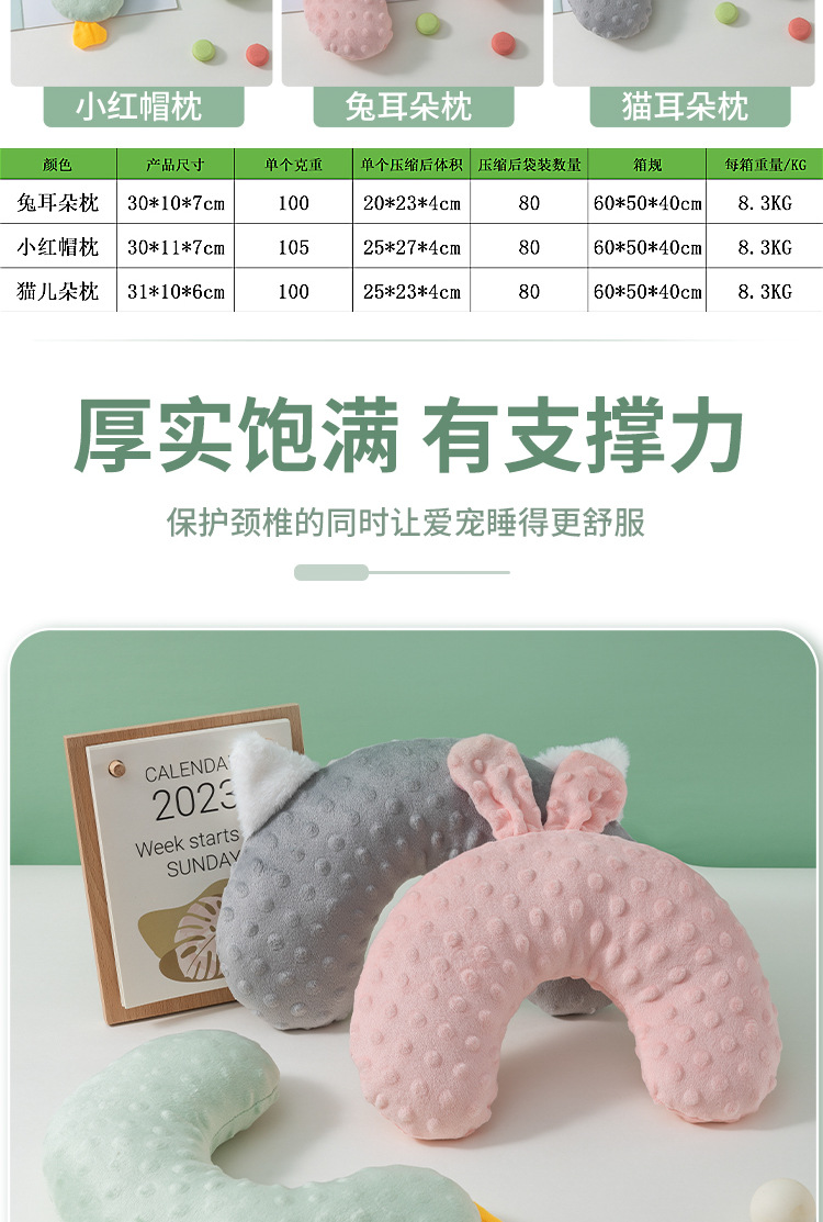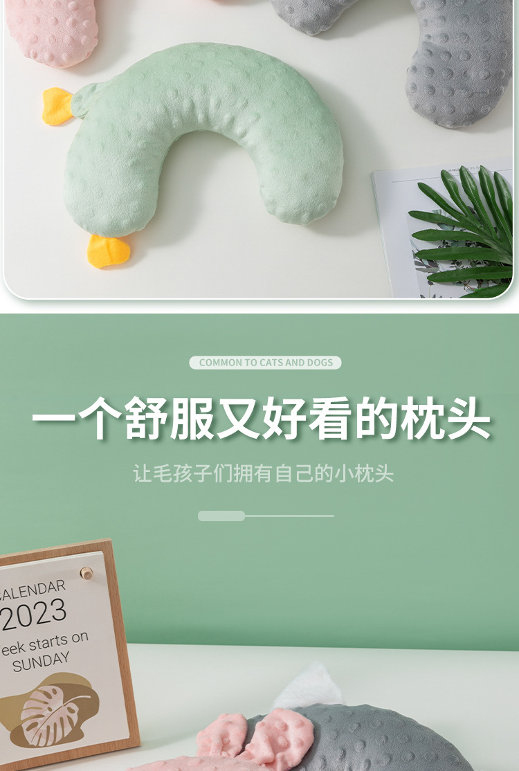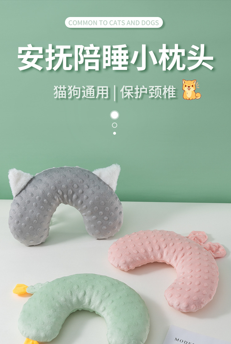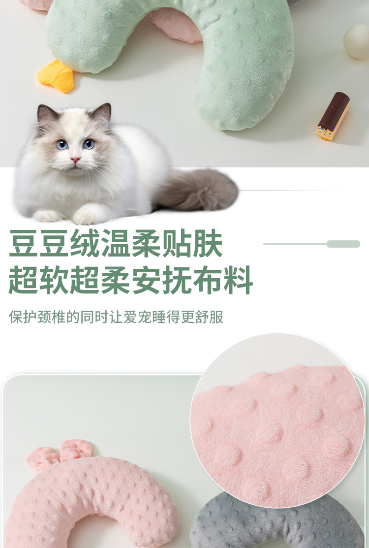 사계절용 애완동물 베개, 고양이와 강아지가 자는 플러시 U자형 베개, 턱 패드 베개, 경추 보호용 수면 베개