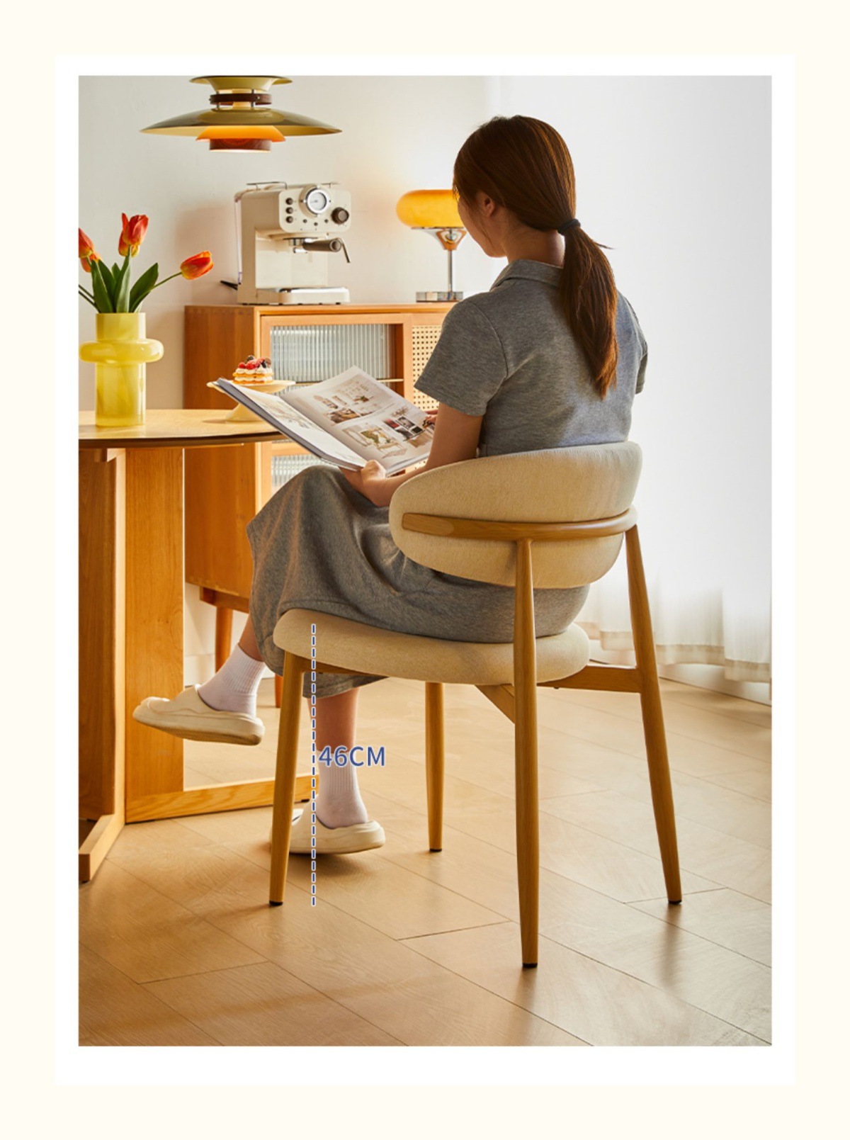 크림 스타일 가정용 솔리드 우드 다이닝 의자 라이트 럭셔리 간단한 등받이 의자 호텔 카페 상업용 고급 레저 협상 의자스토어 가기