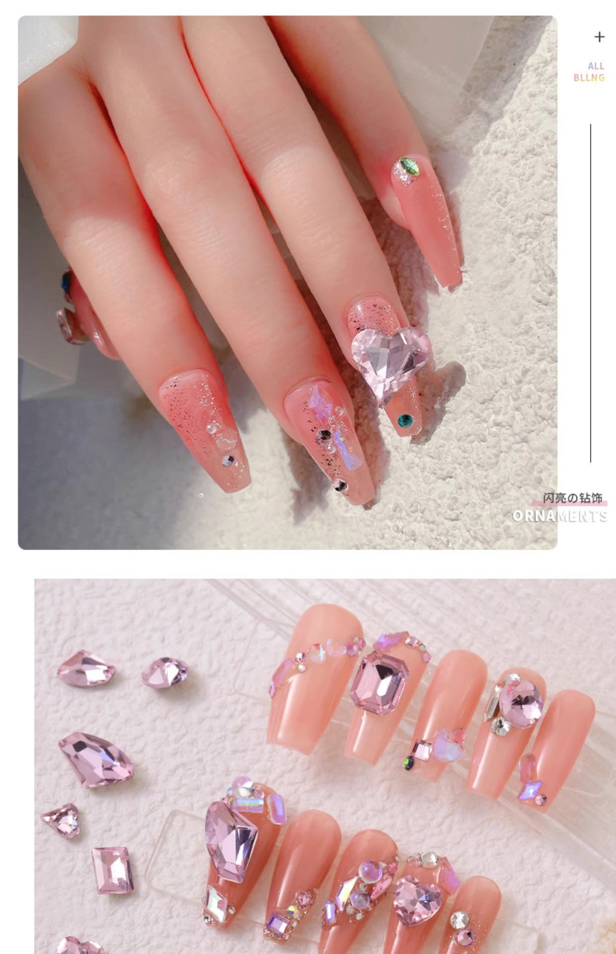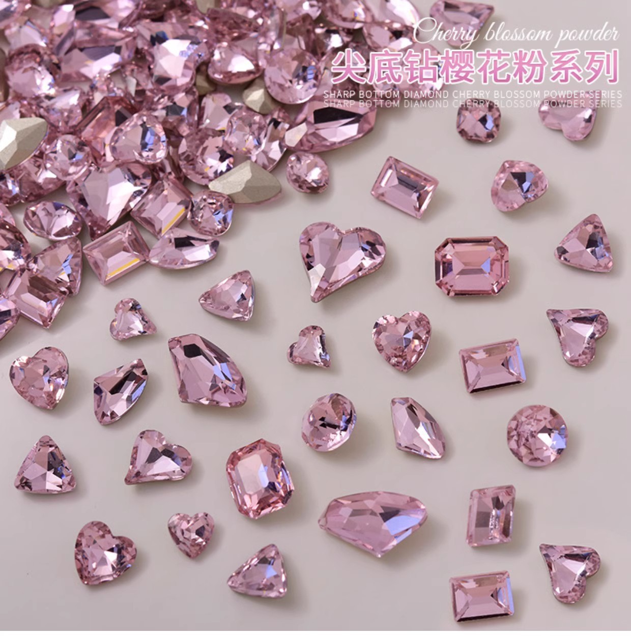 핑크 네일 드릴 k9 플래시 날카로운 바닥 모양의 다이아몬드 보석 지방 사각형 도끼 비뚤어진 심장 사랑 네일 장식