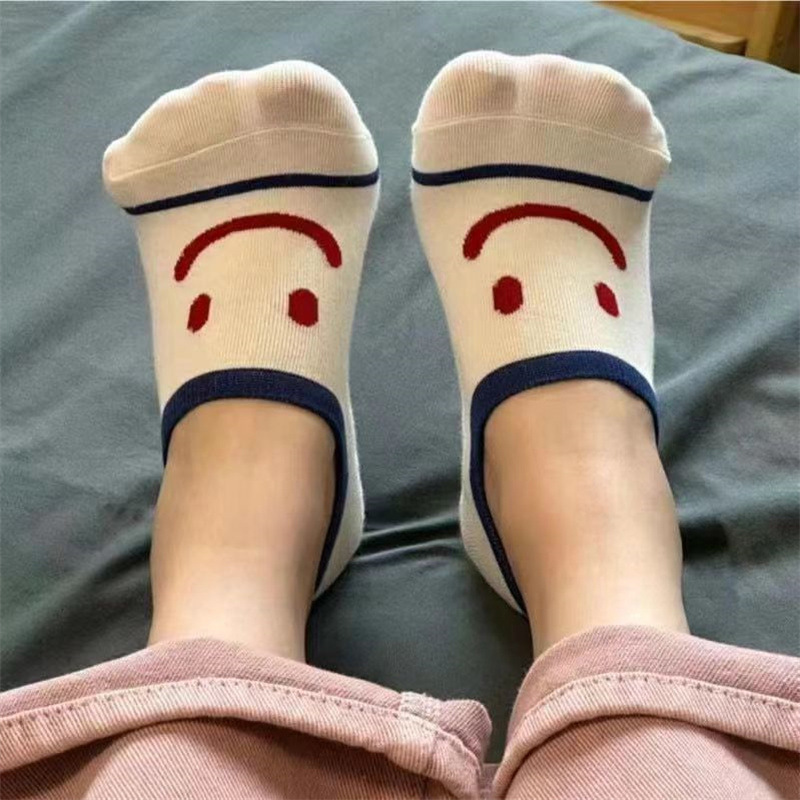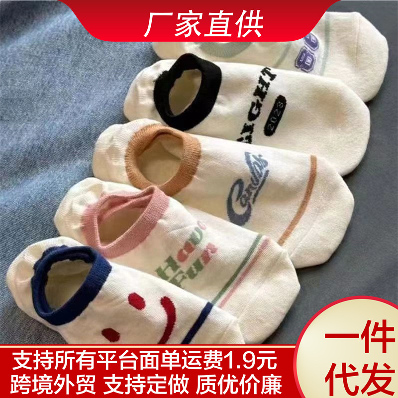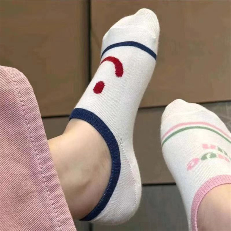 2024 봄과 여름 새로운 귀여운 짧은 양말 여성 양말 여성용 자수 스마일리 편지는 통기성 보이지 않는 달콤한 보트 양말로 떨어지지 않습니다.스토어 가기