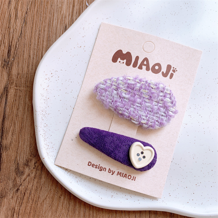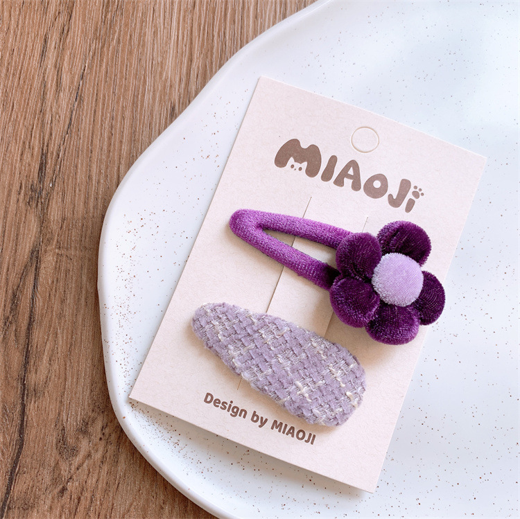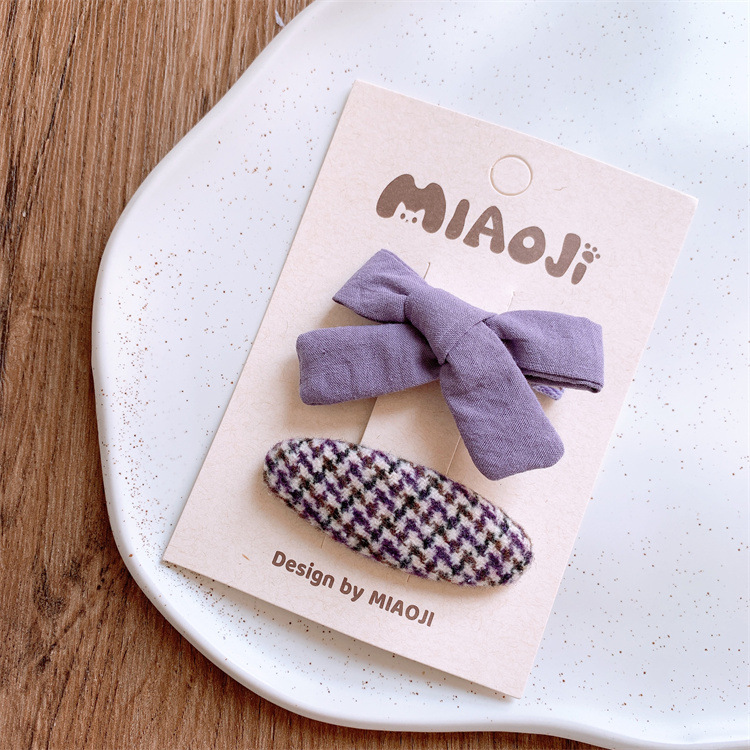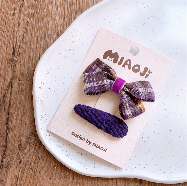 새로운 보라색 격자 무늬 활 어린이 꽃 깨진 머리 BB 클립 소녀 사이드 뱅 헤어핀