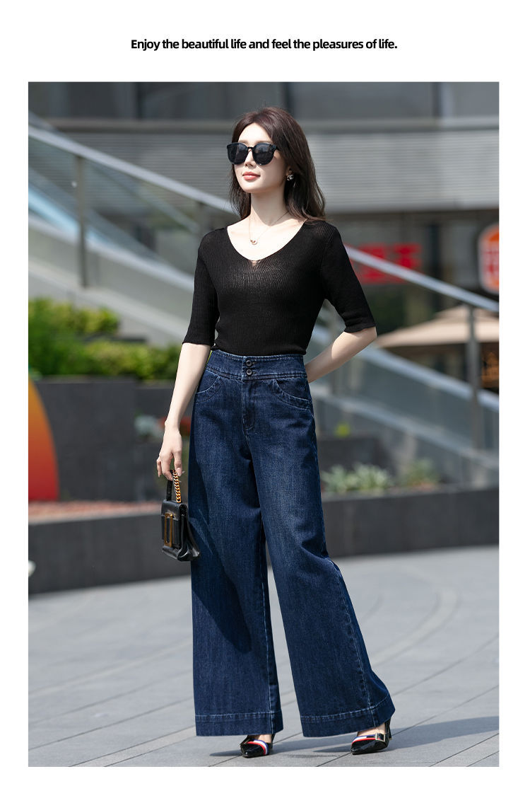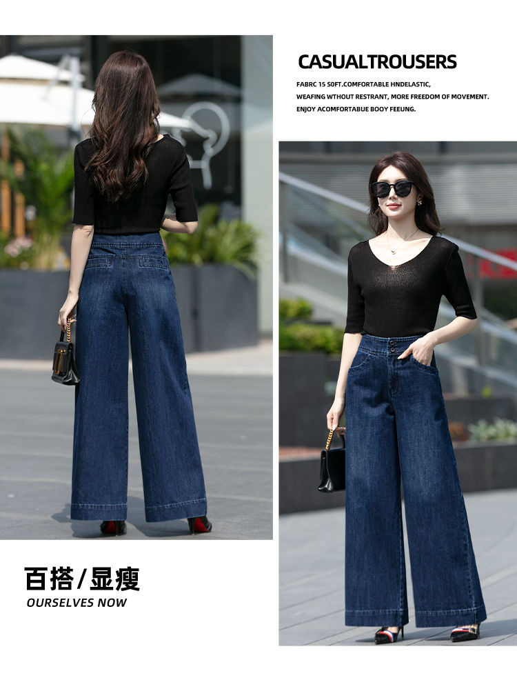 여성 의류 소녀 뉴 하이 허리 올 매치 와이드 레그 청바지 여성 캐주얼 루즈 슬리밍 스트레이트 팬츠 슬리밍 2025스토어 가기