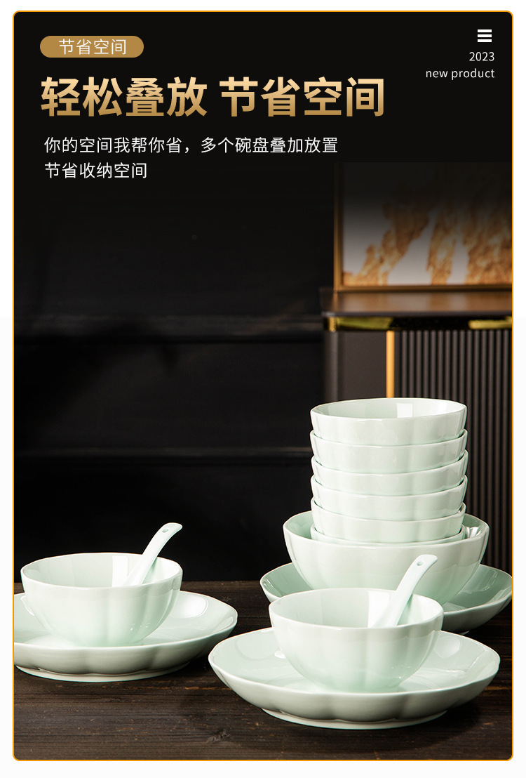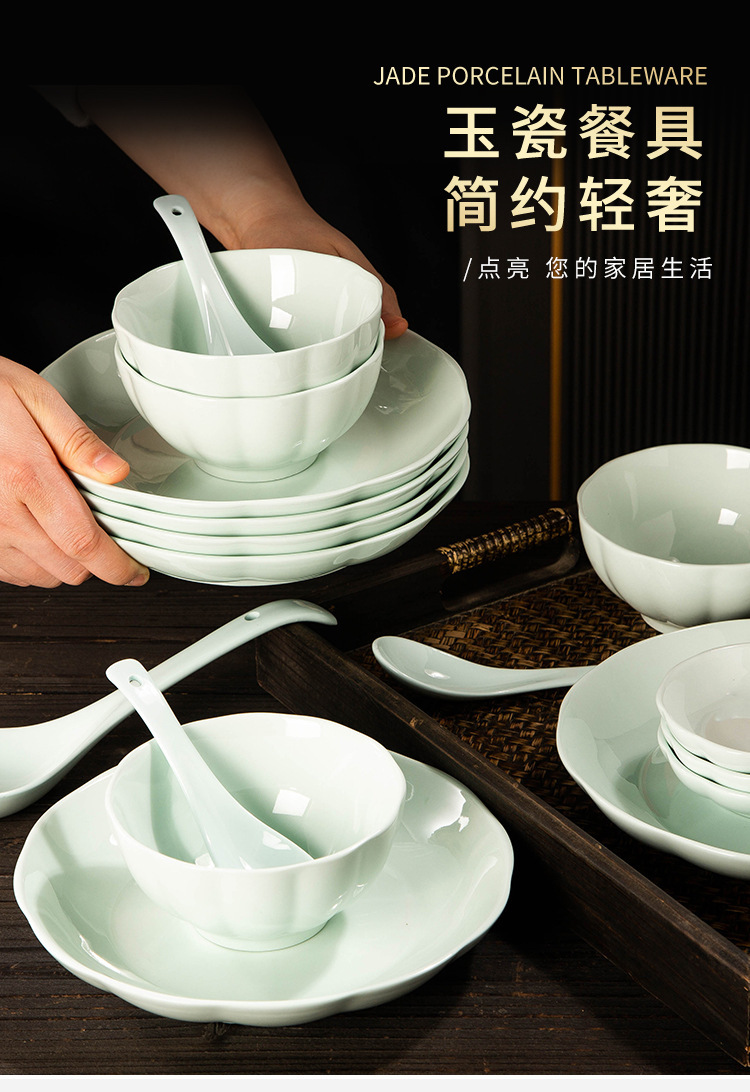 유약 색상 무료 조합 세라믹 가정용 옥 도자기 호박 쌀 국수 그릇 식기 세트 중국 요리