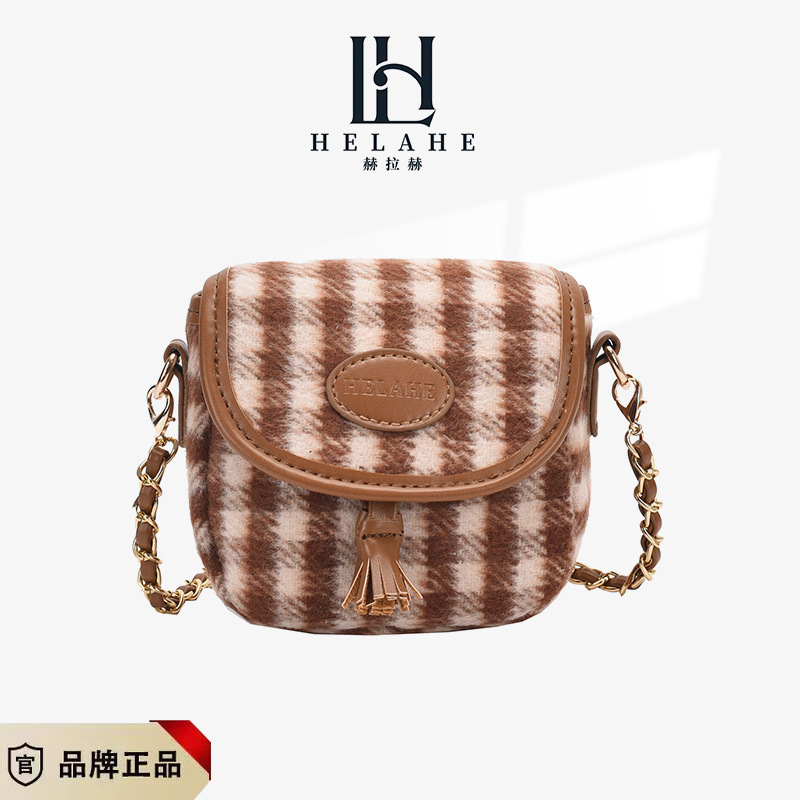 어린이 가방 2024 새로운 한국식 격자 무늬 술 미니 안장 가방 서양식 부모-자식 체인 크로스 백 빨간 봉투