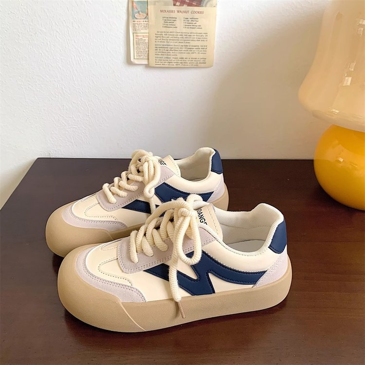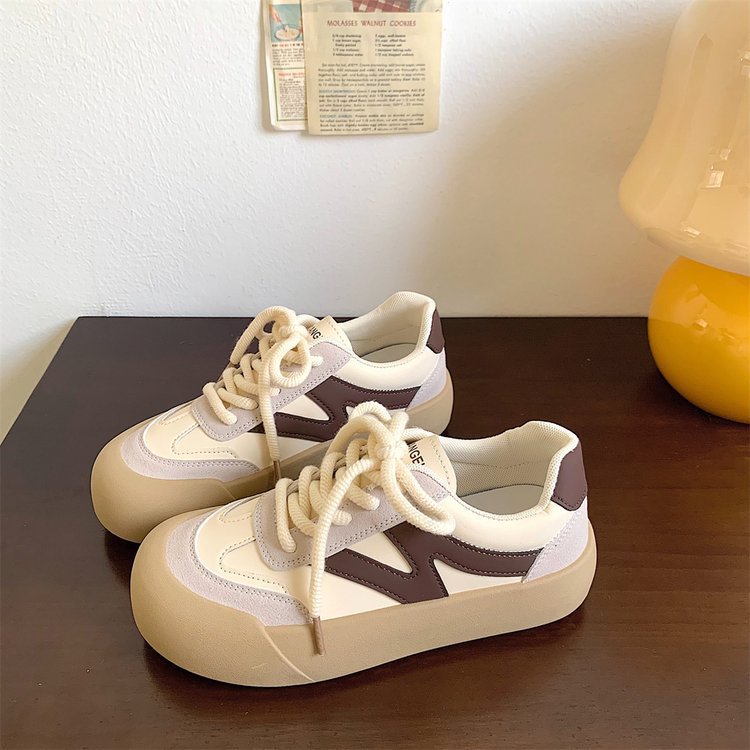 빈티지 독일 훈련 신발 여성 2024 가을 새 학생 조커 홍콩 스타일 두꺼운 단독 흰색 신발 캐주얼 통기성 운동화
