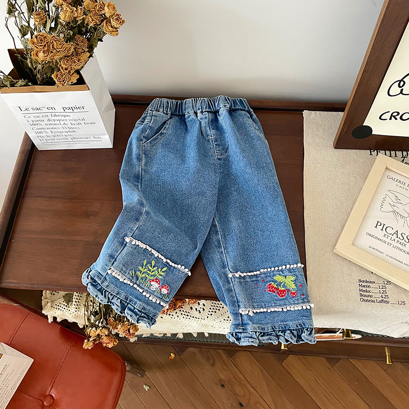 [재고] QK248217 봄과 가을 새로운 어린이 청바지 여자 숙녀 올 매치 바지스토어 가기