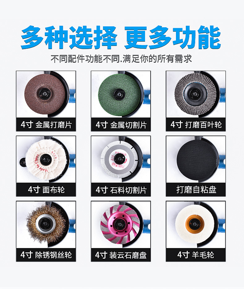 • 쿠보왕 4inch 앵글 그라인더 로터리 스위치(블루)에는 그라인딩 디스크 12개가 기본으로 제공됩니다.