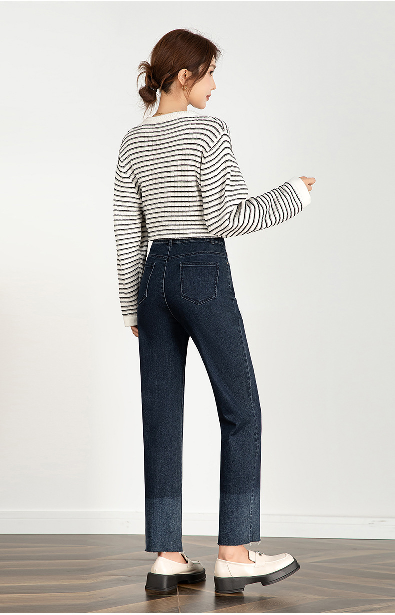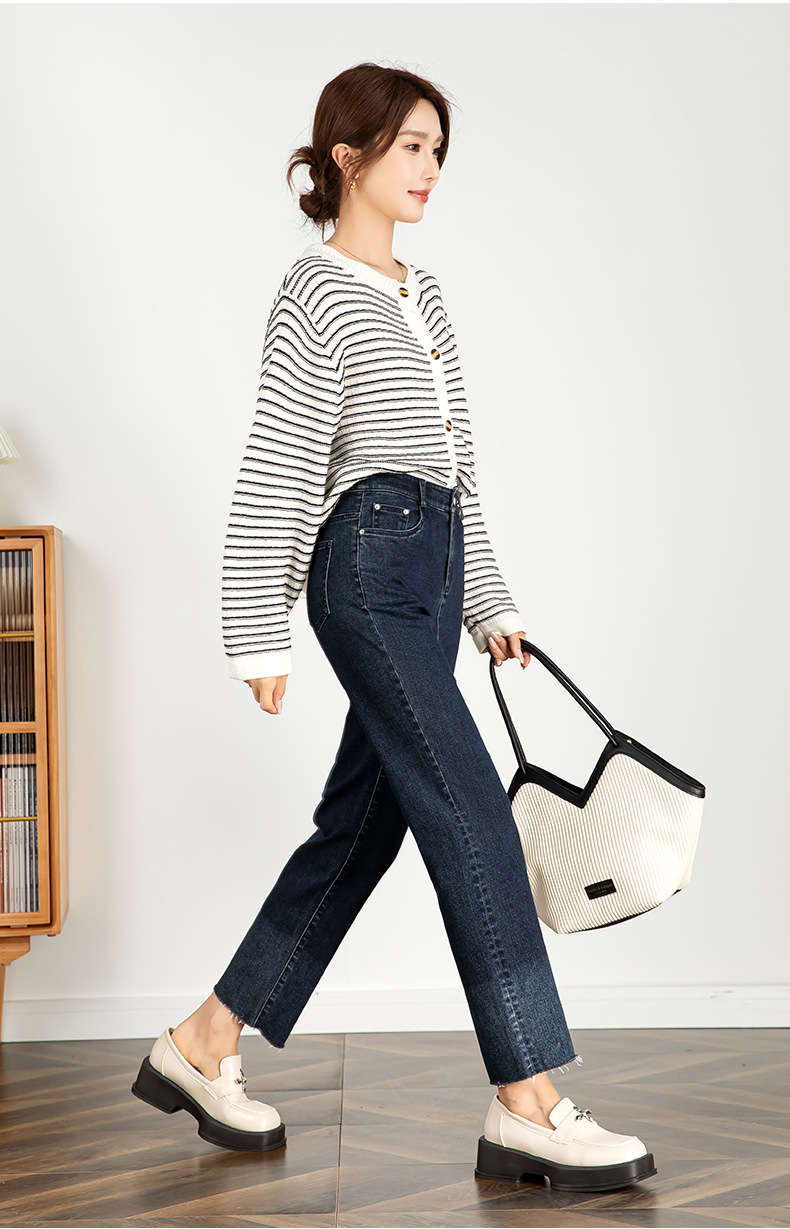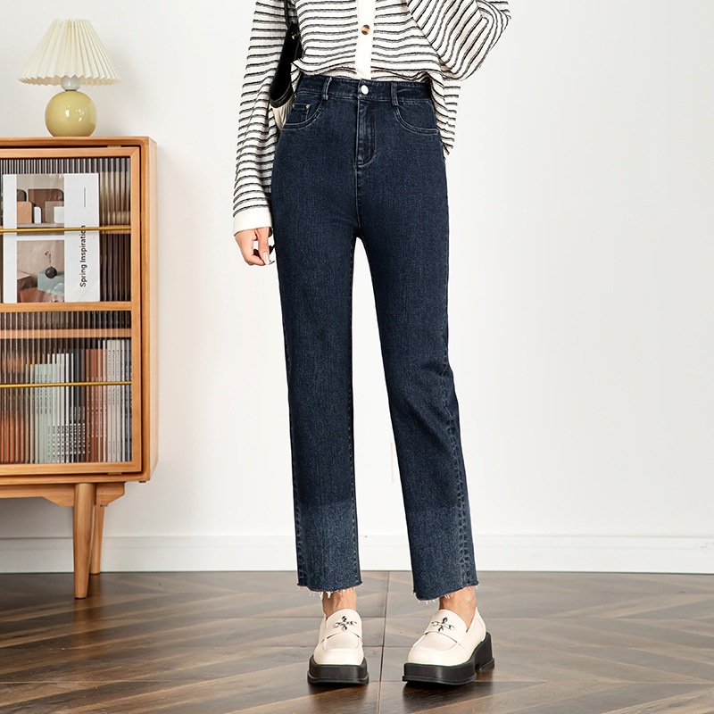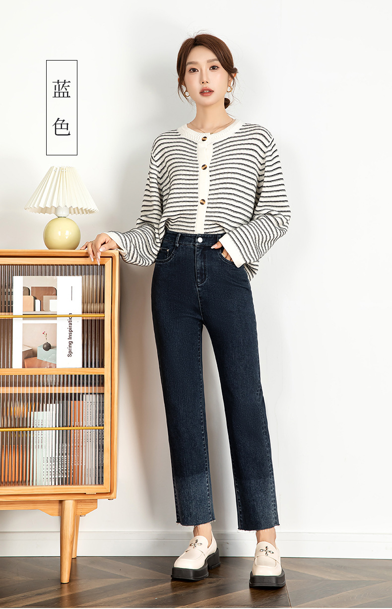 그라디언트 컬러 청바지 여성 2024 가을 패션 트렌드 재고 한국 발목 길이 바지 좁은 판 스트레이트 다리 바지 21130스토어 가기