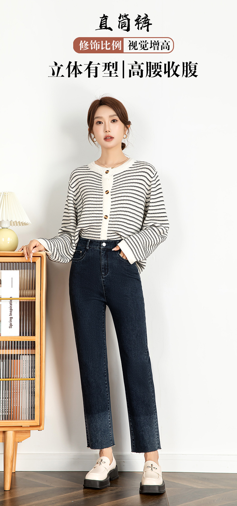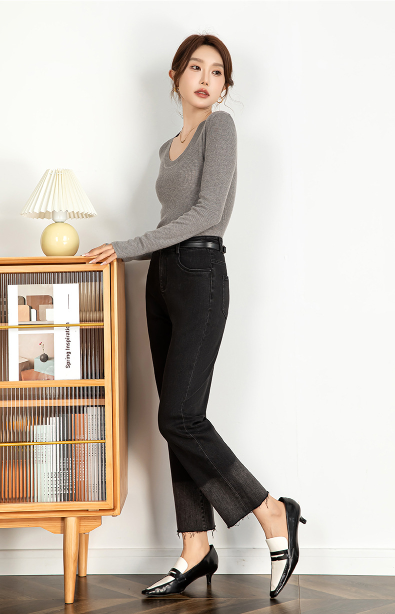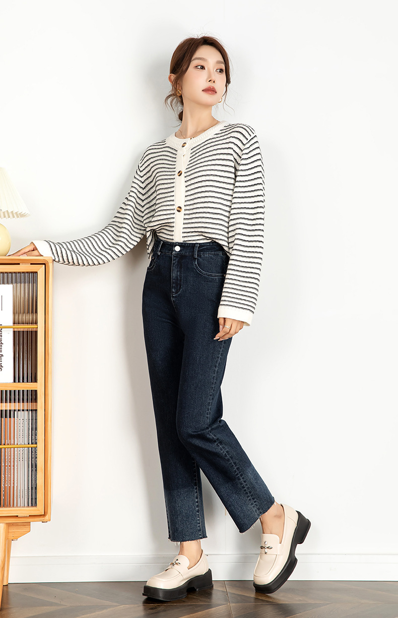그라디언트 컬러 청바지 여성 2024 가을 패션 트렌드 재고 한국 발목 길이 바지 좁은 판 스트레이트 다리 바지 21130스토어 가기