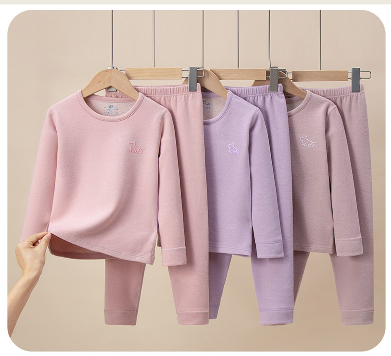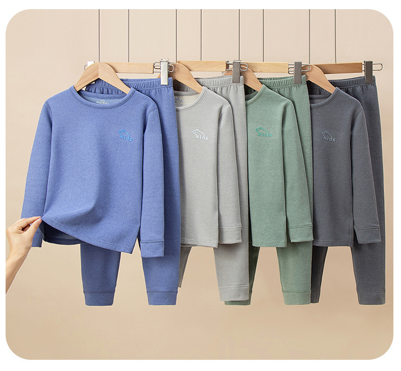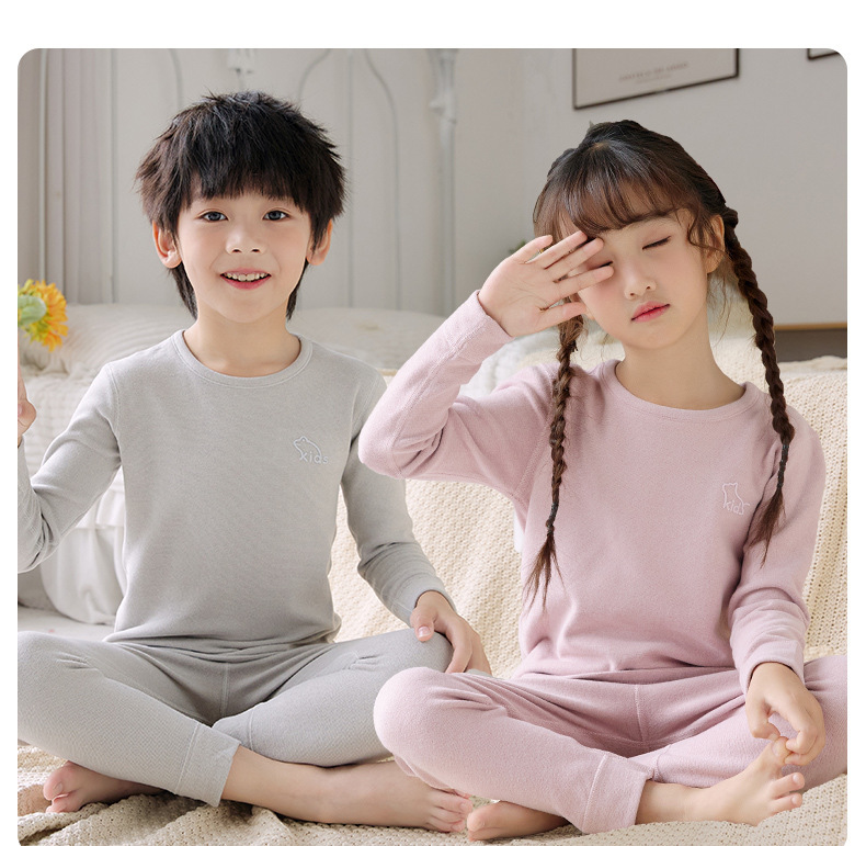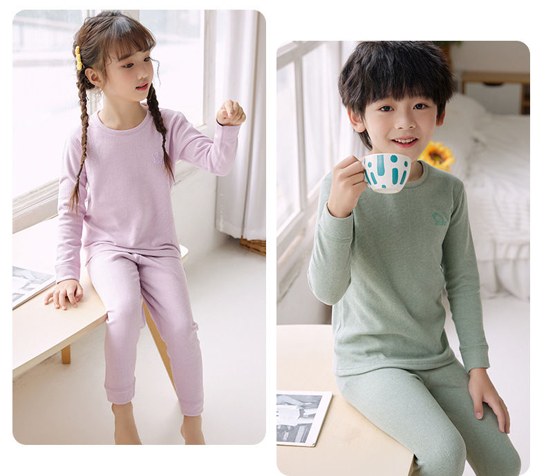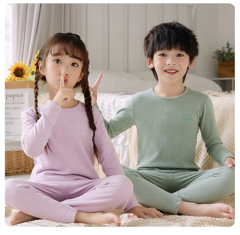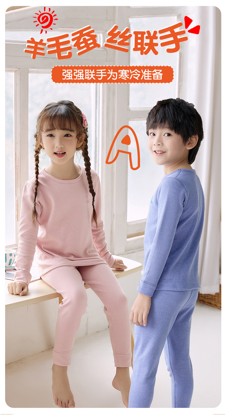 어린이 양모 뽕나무 실크 열 속옷 세트 중대형 어린이 가정 옷 가을 및 겨울 가을 가을 옷과 소년 소녀를위한 바지스토어 가기