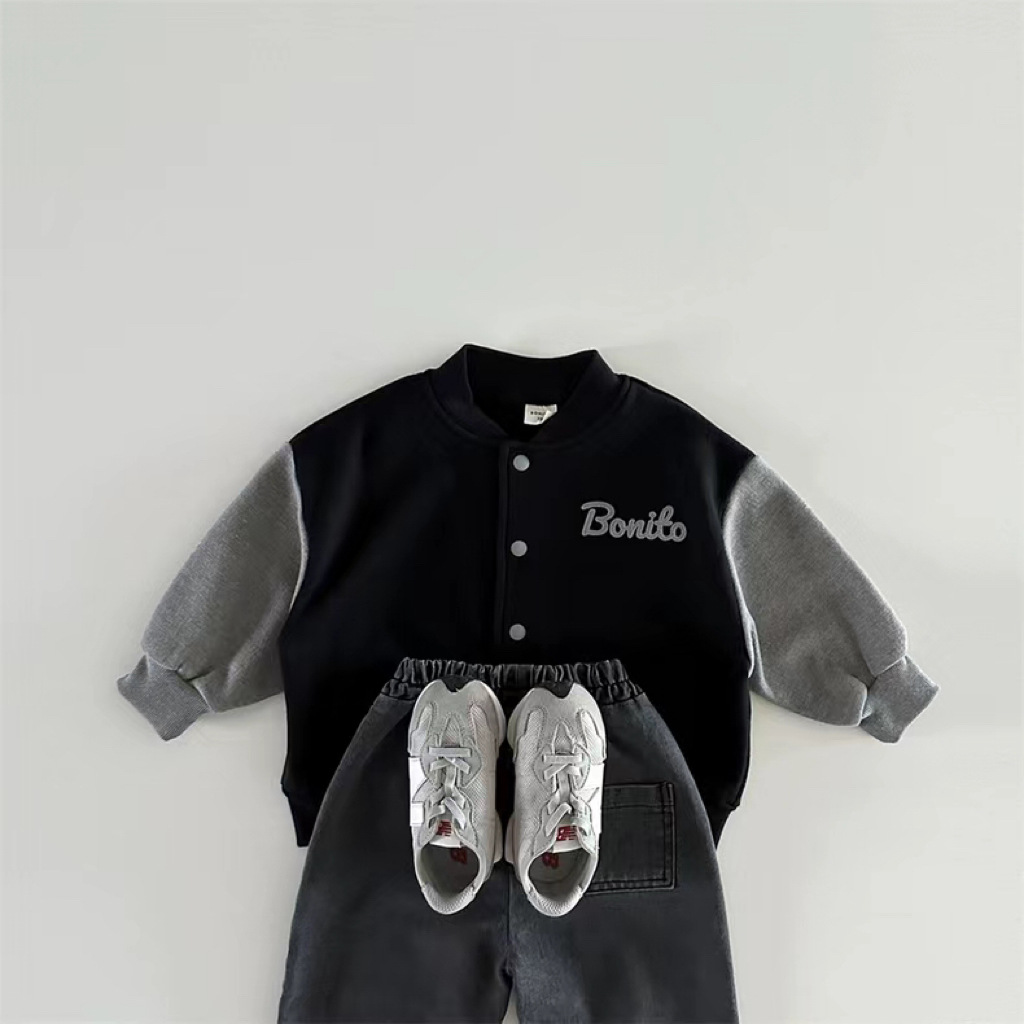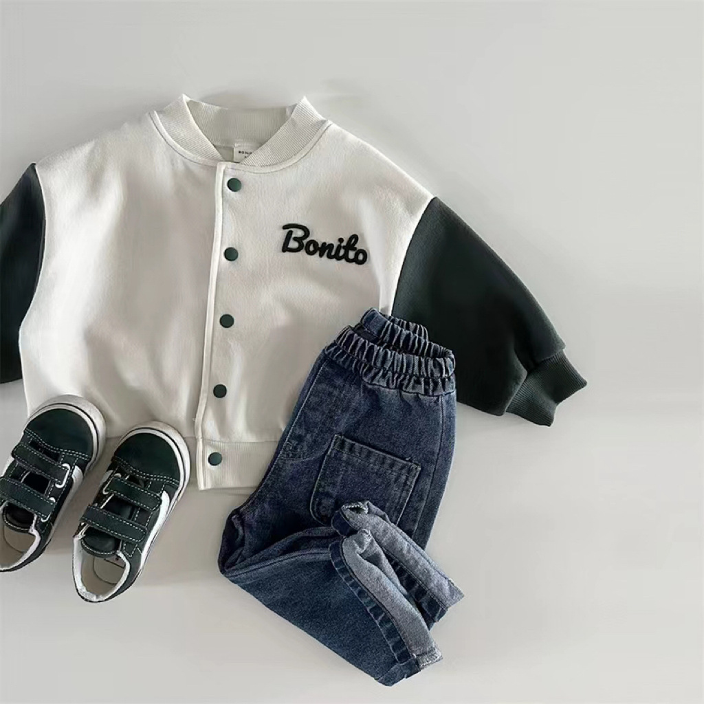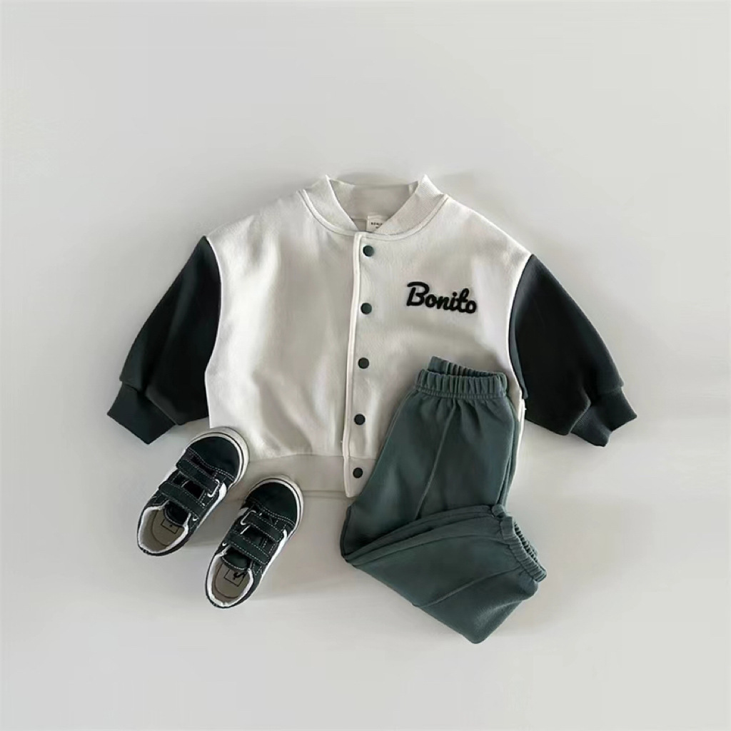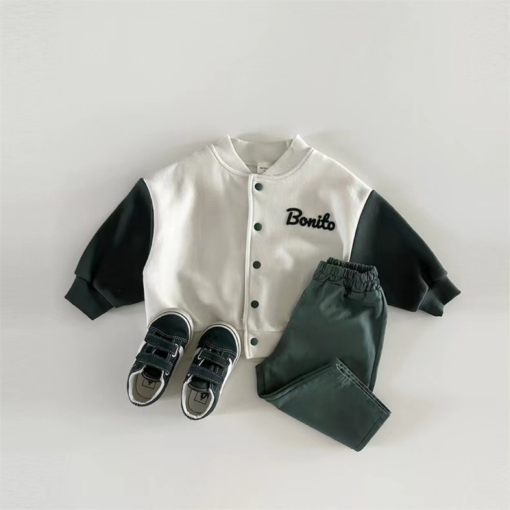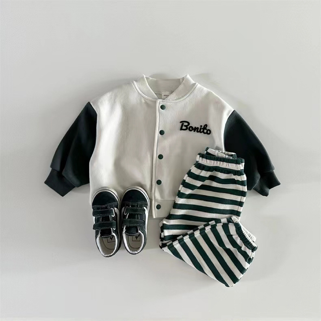 한국 스타일 봄 가을 야구 세트 소년 소녀 아기 어린이 카디건 코트 새 긴 소매 컬러 매칭 볼 세트 올 매치스토어 가기