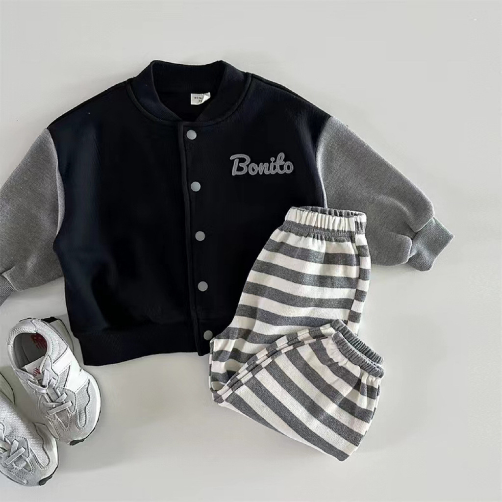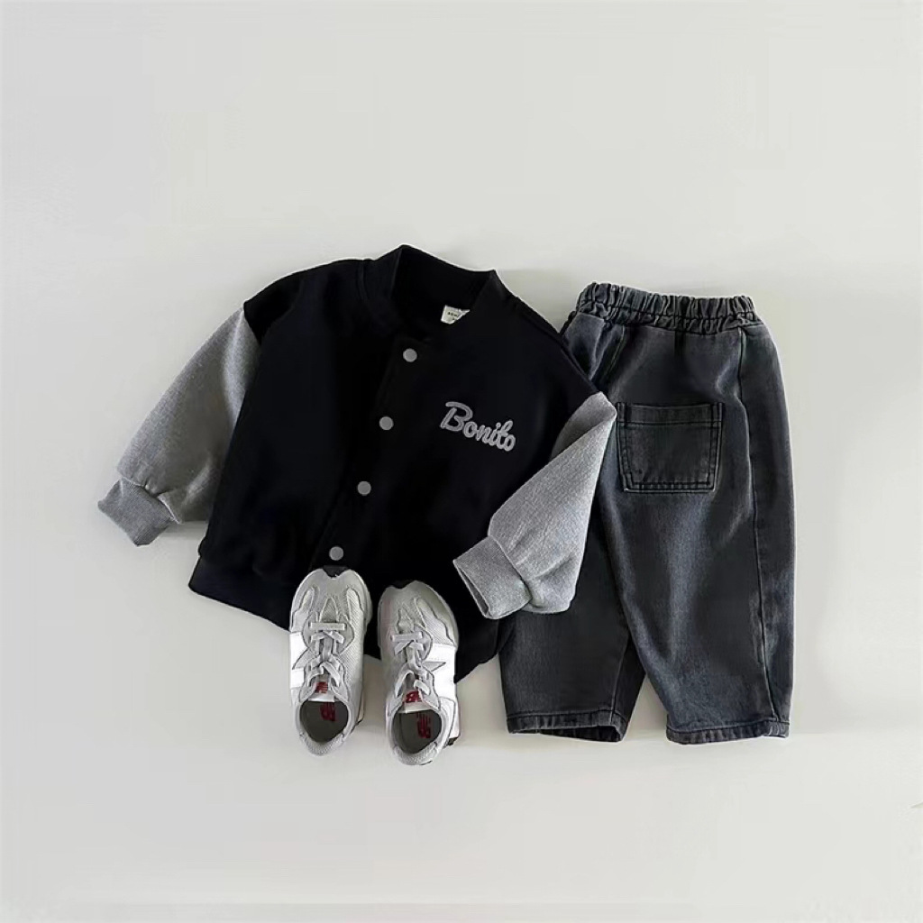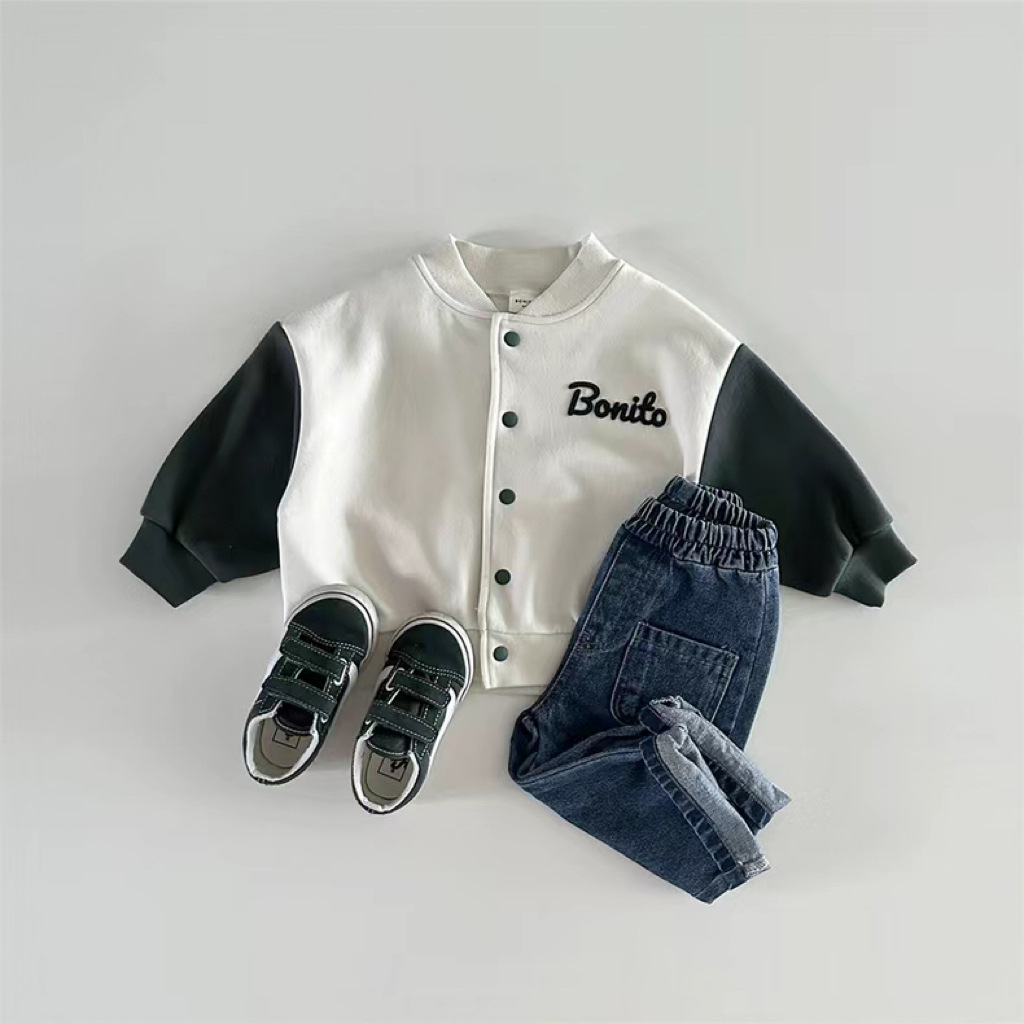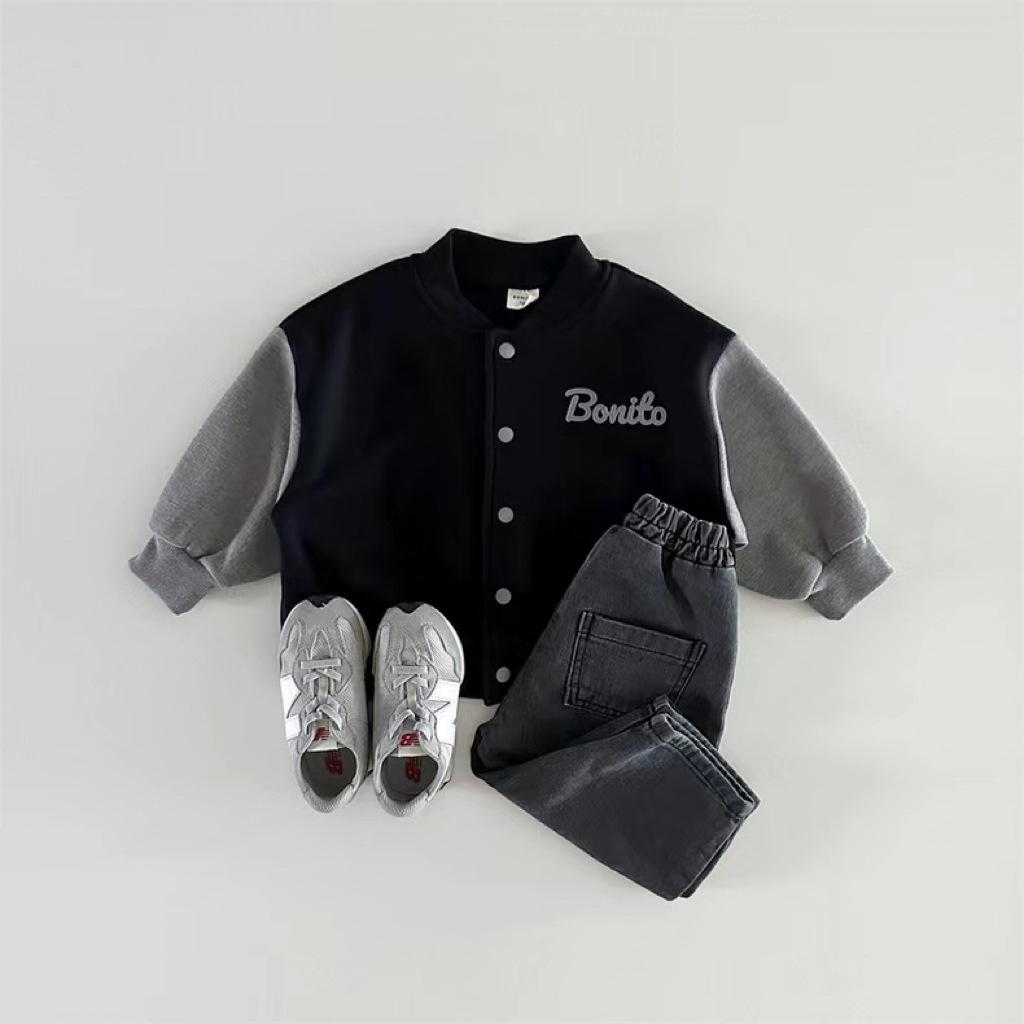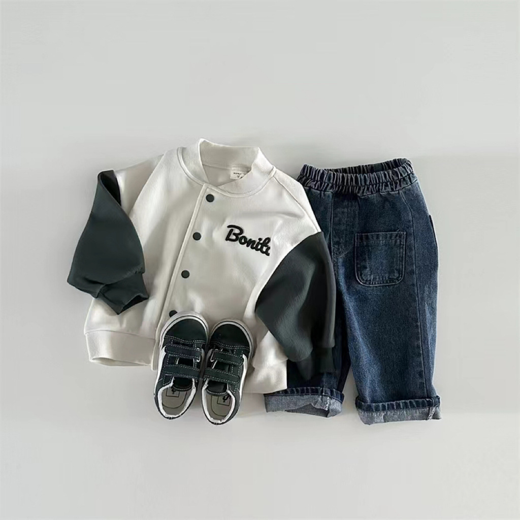 한국 스타일 봄 가을 야구 세트 소년 소녀 아기 어린이 카디건 코트 새 긴 소매 컬러 매칭 볼 세트 올 매치스토어 가기