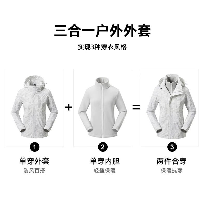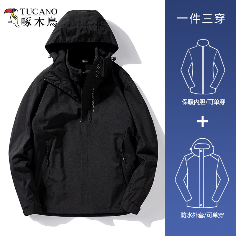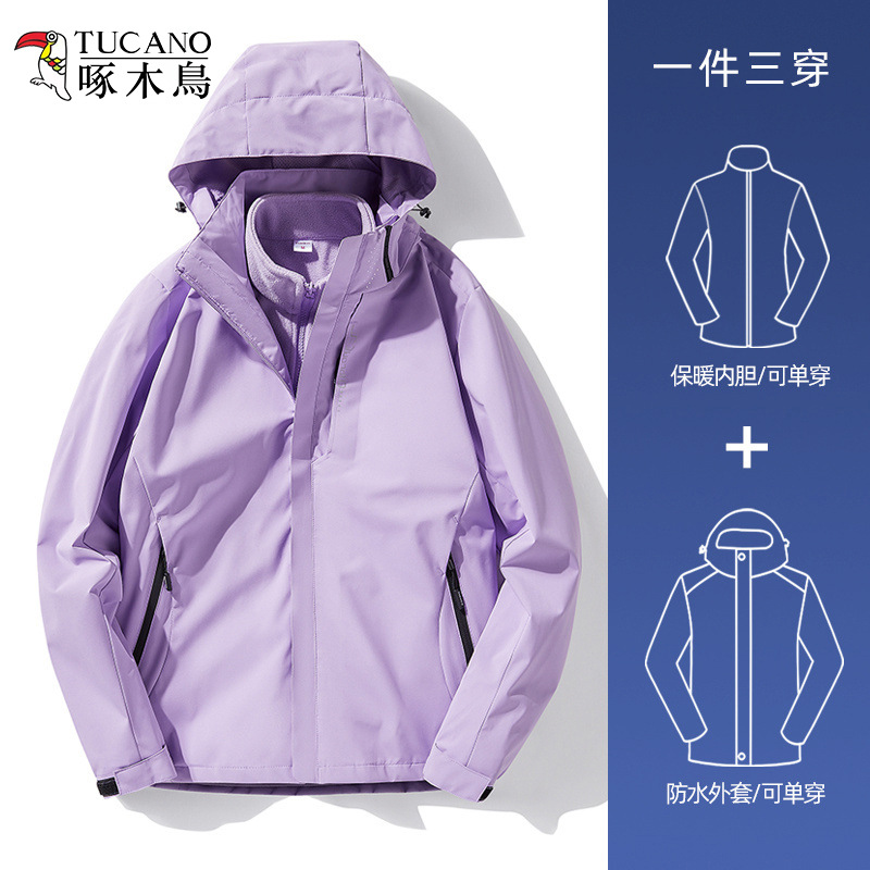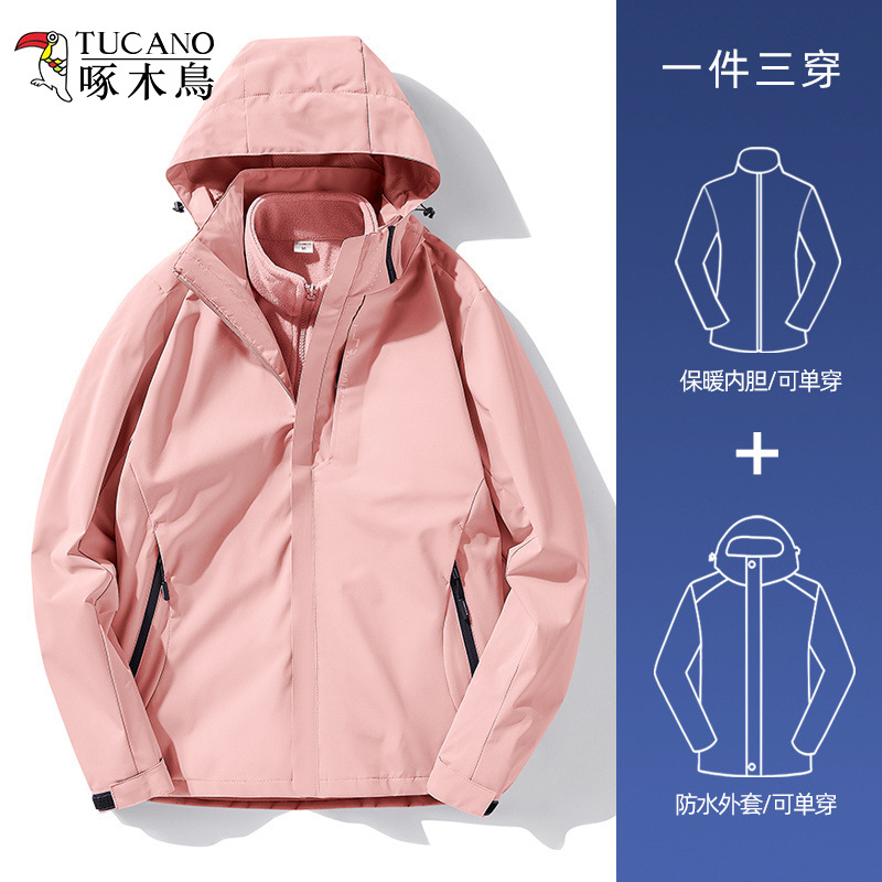 남성과 여성을위한 딱따구리 소박한 옷 봄과 가을 방풍 방수 3 대 1 커플 재킷 코트 야외 여행 조수스토어 가기
