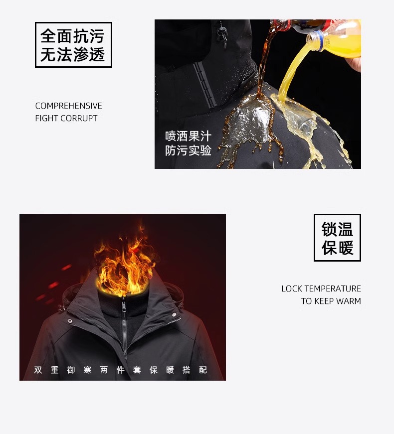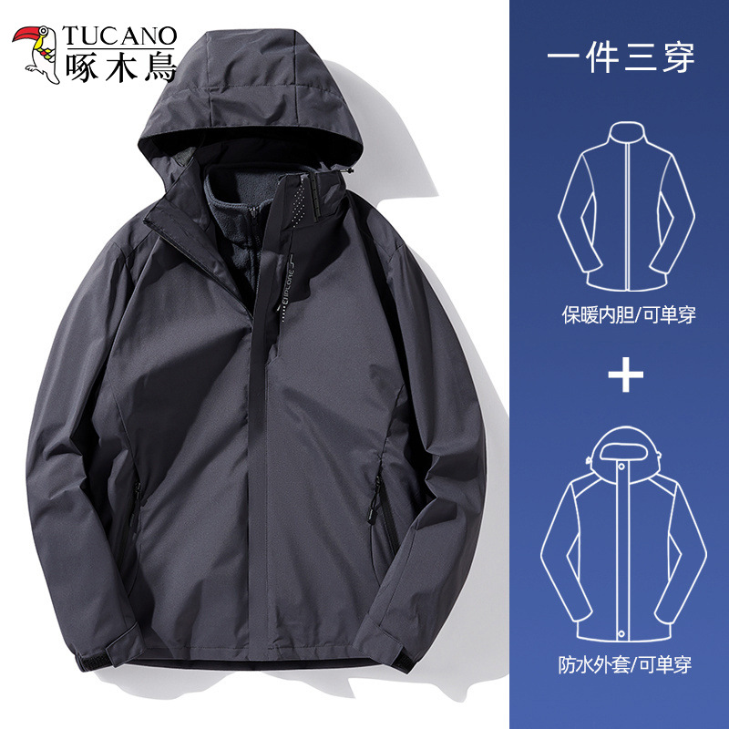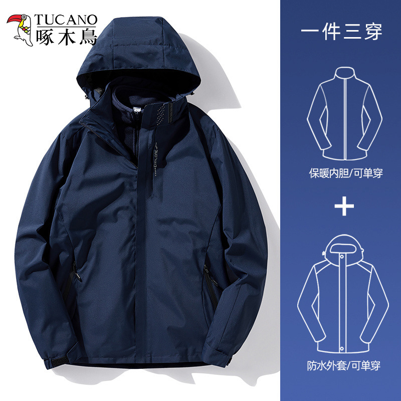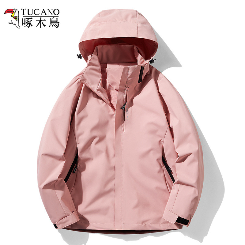 남성과 여성을위한 딱따구리 소박한 옷 봄과 가을 방풍 방수 3 대 1 커플 재킷 코트 야외 여행 조수