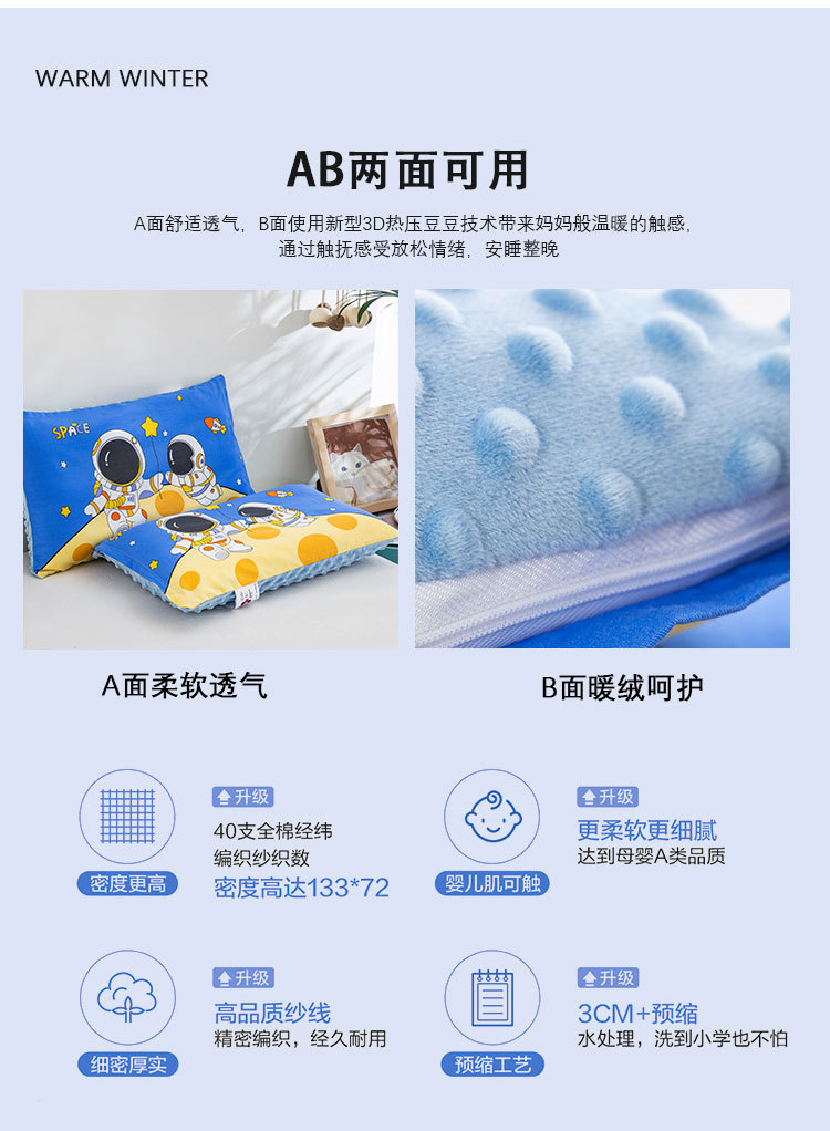 면 완두콩 벨벳 어린이 베개 케이스 30x50 면 유치원 스몰 사이즈 어린이 아기 베개 케이스 싱글 40x60