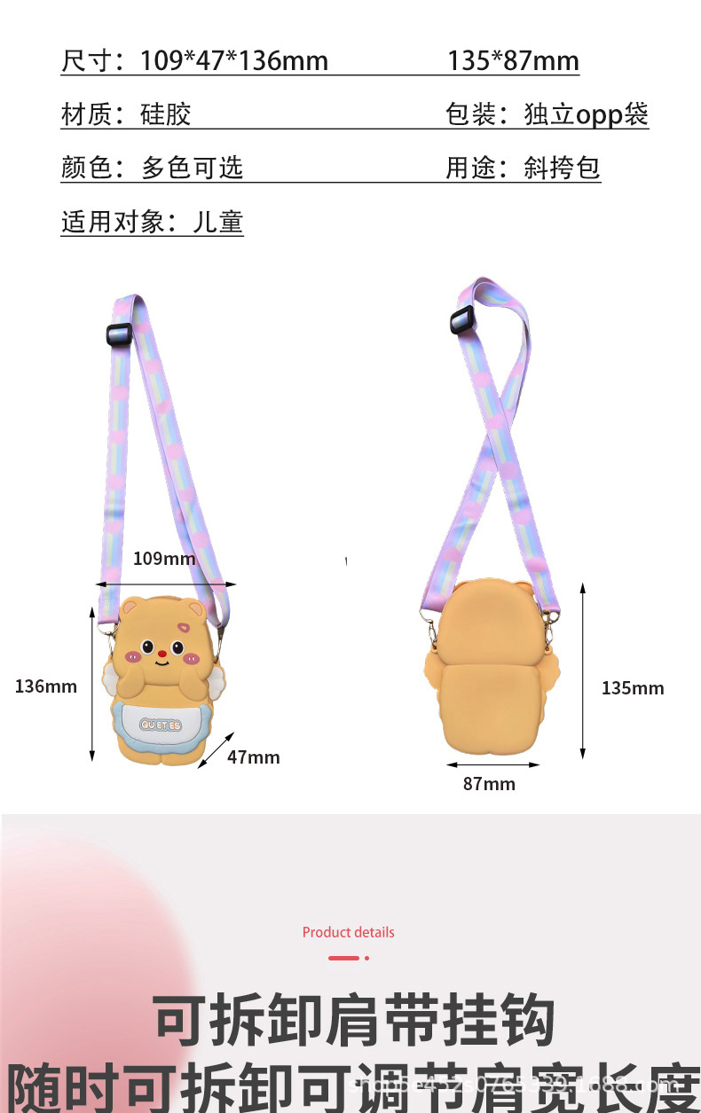 천사 날개 버터곰 실리콘 동전 지갑 인형 외출용 어린이 크로스백 제조사 직판 귀여운 스타일