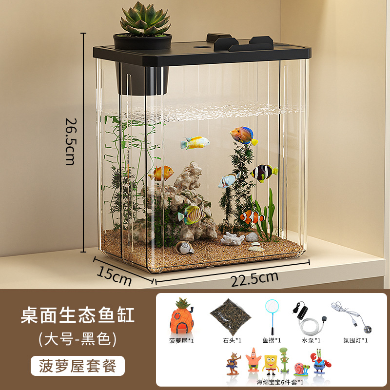데스크탑 물고기 탱크 투명한 수족관 거실 풍경 중소 생태 가정용 플라스틱 거북 탱크 바닥 배수 순환스토어 가기