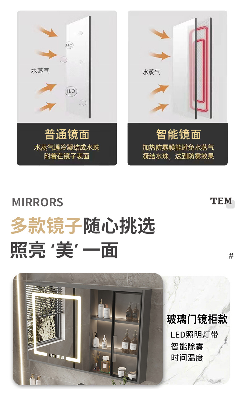 • T102-70 흰색/유리문 스마트 거울 캐비닛은 집으로 배달됩니다